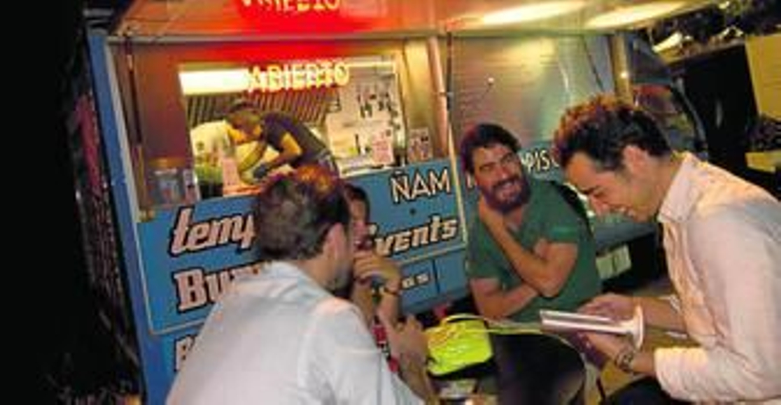 ¿Comida rápida al alcance de todos? La idea no tiene nada que ver con los típicos puestos de churros, hamburguesas o perritos vinculados a las ferias o a los que se instalan junto a los centros y locales de ocio nocturno. Es otra cultura, la de comer calidad en la calle a buen precio. Y no es descabellada. Sushi de salmón ahumado, chupa-chups mar y montaña con mayo de curry o palomitas de bacalao son algunas de las exquisiteces que ofrece este gastrobar sobre ruedas. Pedir, pagar y comer platos gourmet en apenas 15 minutos. Ésta era la idea que Gómez quería trasladar a Lacayejera y demostrar que el concepto de comida rápida, o fast food, y el de comida basura no van necesariamente de la mano.