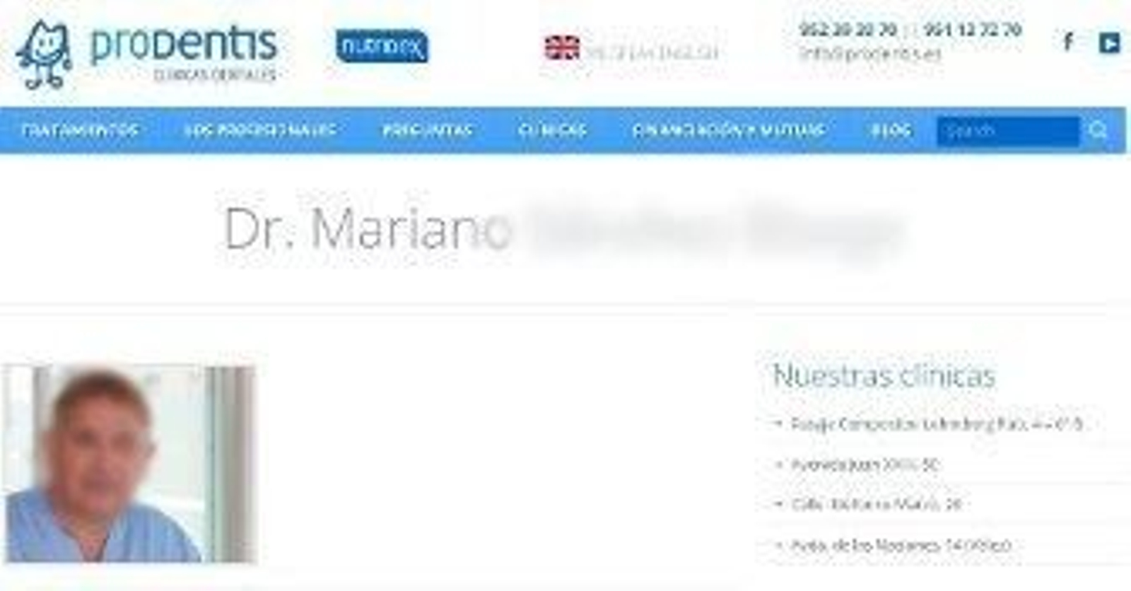 Antes de eliminar su nombre de la web, la dirección de la clínica malagueña Prodentis explicó a preguntas de este periódico que no conocía las denuncias que había en Sevilla contra este médico, que Mariano S. B. aparece en la web como parte de su equipo de profesionales "desde hace un mes y medio" y que "no ha llegado a hacer una operación" al estar de viaje en Rusia y Gran Bretaña. La gerente Elisa de Rojas añadió que Mariano S. B. se puso en contacto con la clínica este verano para colaborar como cirujano maxilofacial y que aceptaron porque "ha sido un prestigioso profesor de cirugía de implantes, daba cursos y lo conoce desde hace muchos años".