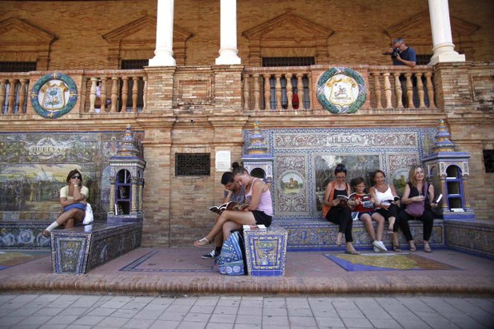 Una centuria con todos sus días y sus noches. Ése es el tiempo que ha tardado la ciudad de Sevilla en saldar la deuda personal que tenía con el arquitecto Aníbal González, quien ideó la Plaza de España para la Exposición Iberoamérica de 1929 y que se ha convertido en uno de los lugares más emblemáticos de la capital andaluza. Concretamente, los editores de Punto Rojo Chema García, Enrique Parrilla e Iván Parrilla han sido los encargados de conciliar a la plaza con uno de los propósitos que se marcó el edificador sevillano cuando ideó este enclave: convertirlo en una biblioteca pública y al aire libre para oriundos y visitantes. Ayer, cerca de mil libros fueron depositados en las estanterías de los bancos de este espacio anexo al Parque de María Luisa por el equipo de la editorial con el objetivo de hacer realidad aquel pensamiento.