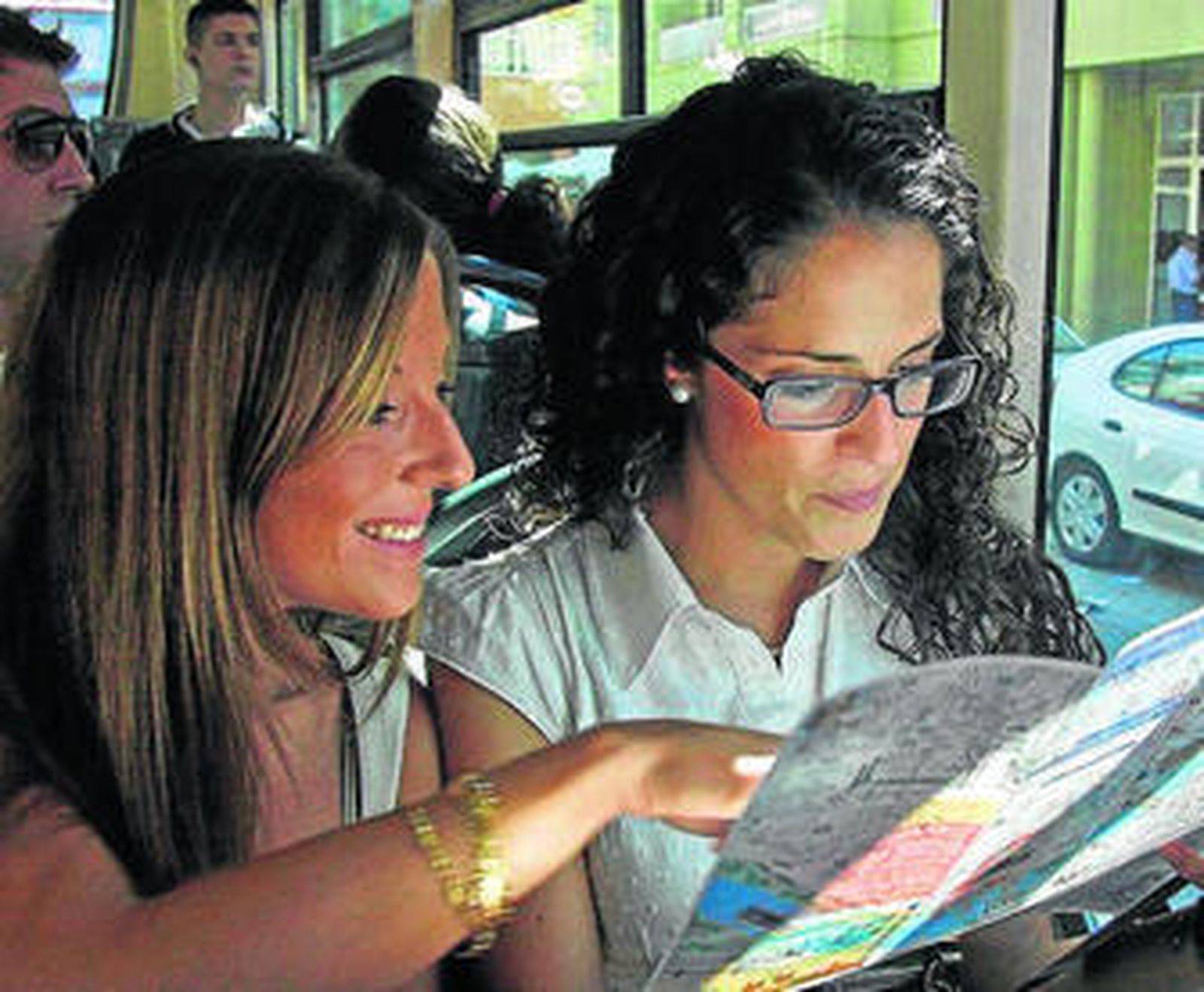 Clara Gieure tiene 27 años y viaja en el 27. Andalucía Residencial-Ponce de León. Clara comparte asiento con Carolina Tomás, que cumplirá 27 años el 15 de octubre. Es el primer día de sus vidas que van a dormir en Sevilla. Han venido desde Valencia para participar en un congreso de Economía Aplicada. "Dicen que esta ciudad es casi tan importante como Madrid", apunta Clara con el plano desplegado. No les suena el nuevo alcalde ni les sonaba el anterior. Cuando hicieron la primera comunión, ya era alcaldesa de Valencia Rita Barberá, que este verano cumplió 20 años en la Alcaldía. "La gente la aprecia mucho", dice Clara, que trabajó para Barberá en temas de relaciones internacionales. Es su primera visita a la Giralda, y no saben si ir por Cuna o por Sierpes. Se lo piensan mientras miran las setas de Metropol. "No está mal".