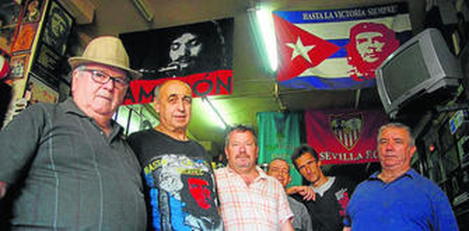 Salvador Gómez Berraquero le puso al bar Carmesí "porque es el color de Sevilla". Está lleno de posters del Che Guevara y de Camarón de la Isla. "El Che no es una colección, es una ideología. "En mi opinión, después de Jesucristo no ha habido otro como Ernesto". En cuando a los alcaldes, se queda con Manuel del Valle. "El único (hasta Zoido) que ganó con mayoría absoluta". Joaquín González Florido discrepa. "No ha habido otro alcalde como el marqués de Contadero". El que fichó a Juan Arza, recuerda uno en este bar donde proliferan los símbolos sevillistas. Barrio de aluvión: Enrique Fernández Guillén, antenista (en paro), llegó de Torreblanca; Miguel Cazorla, soldador, de Regiones Devastadas; José Luis Martín, pintor, de Su Eminencia.