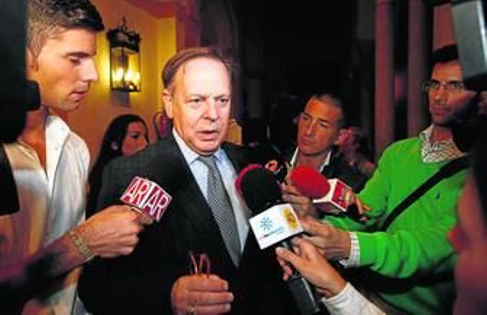 En el interior del Alcázar se encontraba el presentador del libro, el periodista y amigo de la duquesa Antonio Burgos. La cancelación fue comunicada por Carlos Crehueras, directivo de la editorial Planeta, y los detalles de la misma fueron facilitados por Carmen Tello. "Se ha caído sentada", dijo la amiga de Cayetana de Alba, su madrina de la boda que el pasado día 5 contrajo con Alfonso Díez. El doctor Miguel Ángel Muñain habló con la prensa en el Alcázar e insistió en el necesario reposo. No quiso entrar en detalles, a preguntas de la prensa, sobre los efectos que la caída tendrá en la luna de miel que los recién casados tienen previsto realizar en tierras tailandesas.