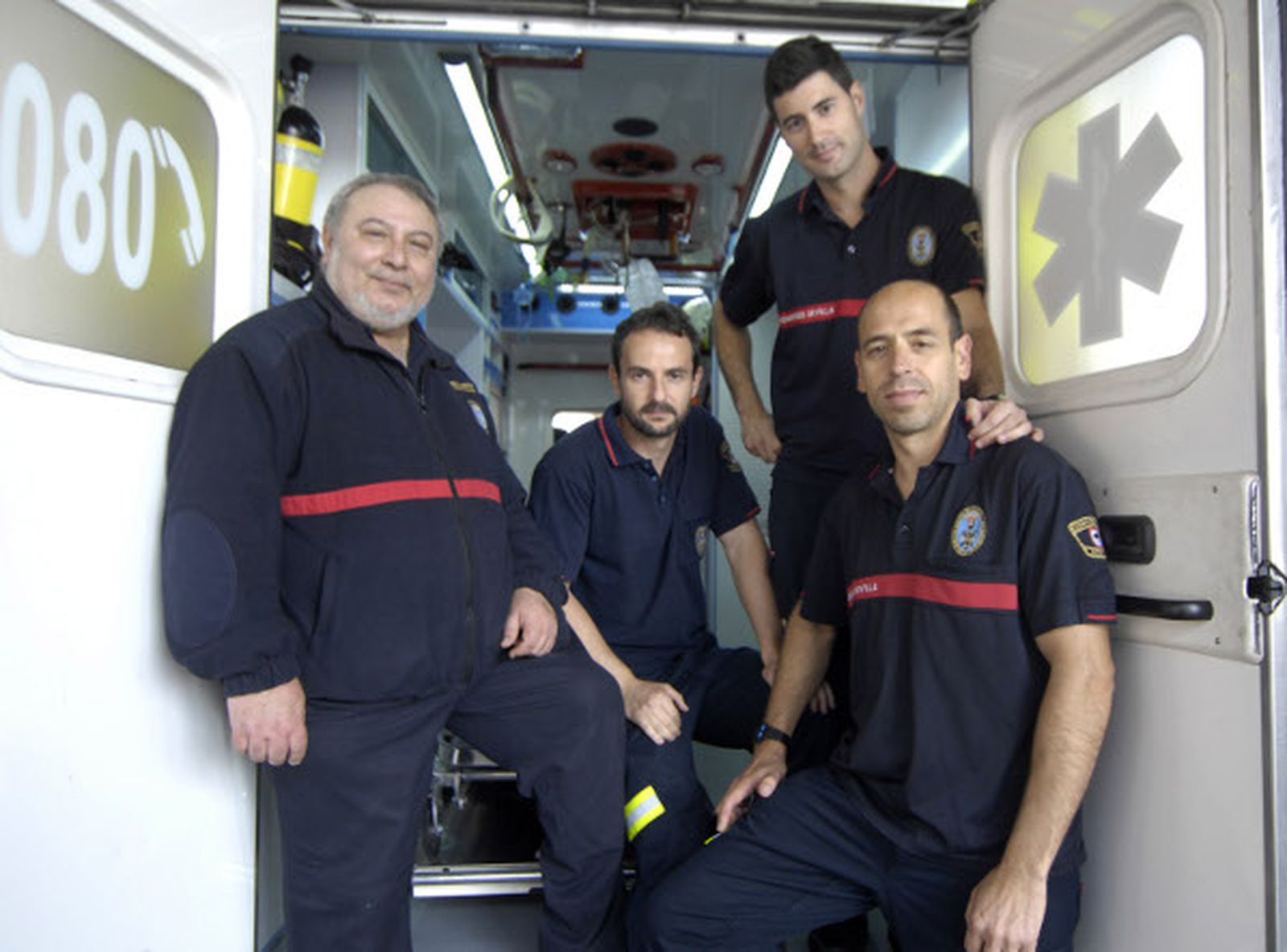 La llamada de auxilio llegó pronto al parque central de Bomberos, en San Bernando, donde en pocos minutos se organizó un equipo de Emergencias integrado por un médico, dos agentes auxiliares y el conductor de la ambulancia. El trayecto es corto, a pocos metros de San Bernando, cerca de la Puerta de la Carne se encontraba esperando auxilio Mónica, con dolores de parto.