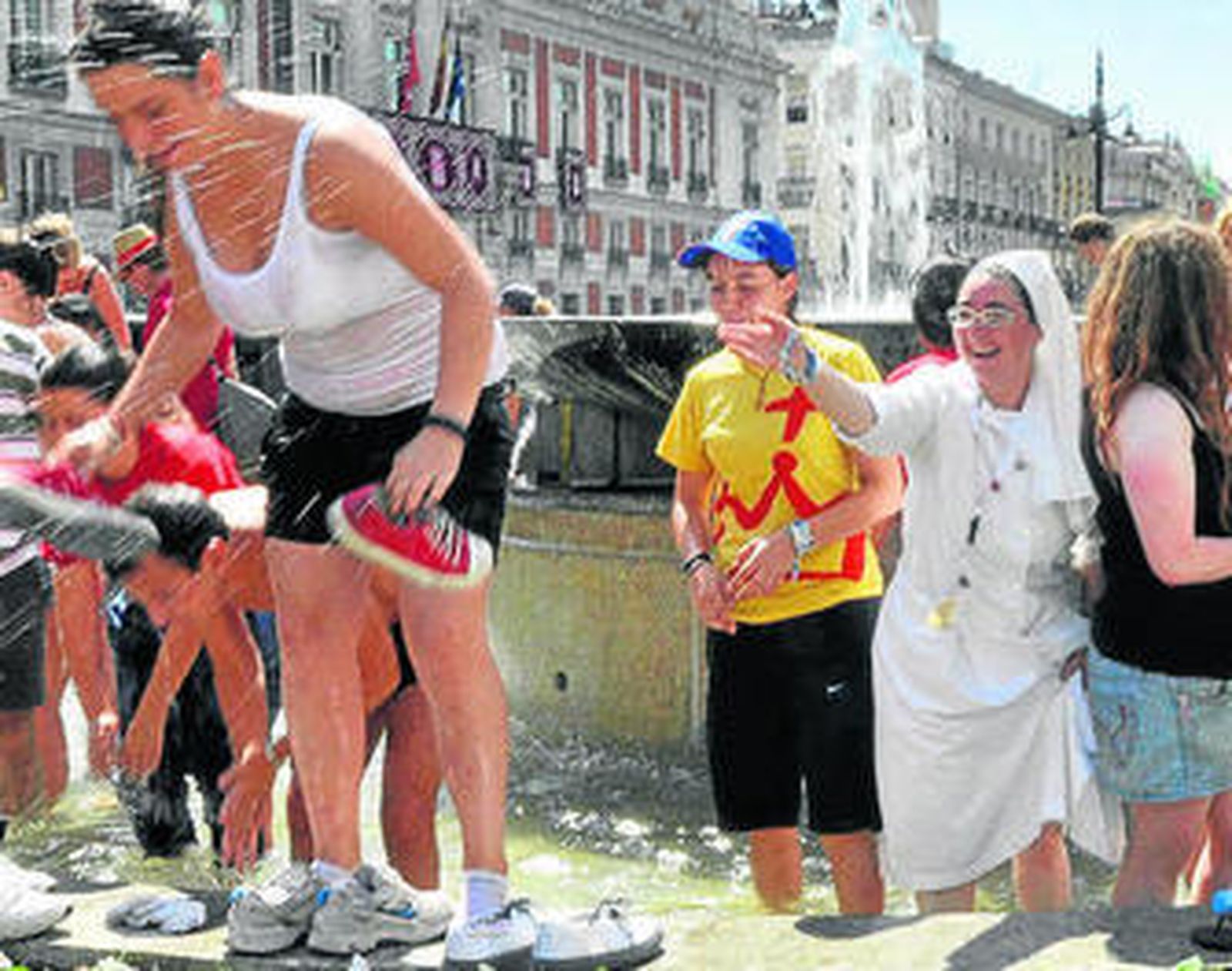 El grupo cada vez se va haciendo más numeroso. Son ya las 18:00 y deciden esperar el paso del papamóvil a escasos metros de la Nunciatura. "Estamos un poco cansados, pero muy bien. Ya hemos ido a dos catequesis y mañana toca la misa del arzobispo Asenjo para toda la Diócesis", comenta Virginia Salado, una de las jóvenes sevillanas. La eucaristía será en la iglesia del Santísimo Sacramento, la más grande del centro de Madrid con capacidad para 1.000 fieles, aunque se quedará muy pequeña ante los 4.000 ó 5.000 jóvenes que se estima que van a acudir.