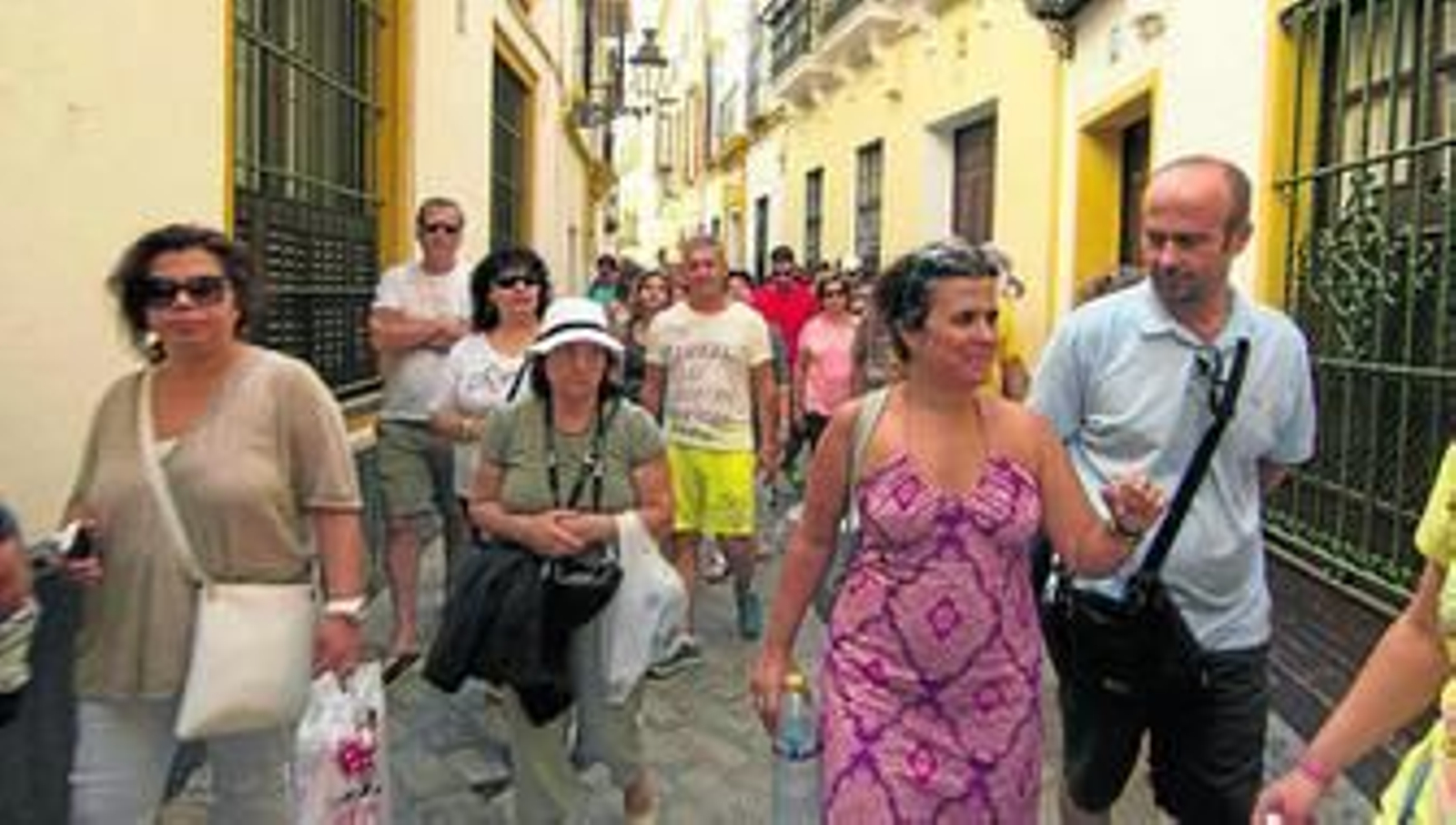 La estancia media de los turistas que visitan Sevilla no alcanza los dos días. Pese al incremento constante de viajeros, que ha batido sus récords este mes de junio, los alojamientos de la ciudad no son capaces de mantener más de dos noches de media a la mayoría de sus clientes. Sevilla suele ser un lugar de paso para aquellos que hacen una ruta más amplia por Andalucía, o de visita obligada a quienes se dirigen luego a las playas de Cádiz y Huelva.