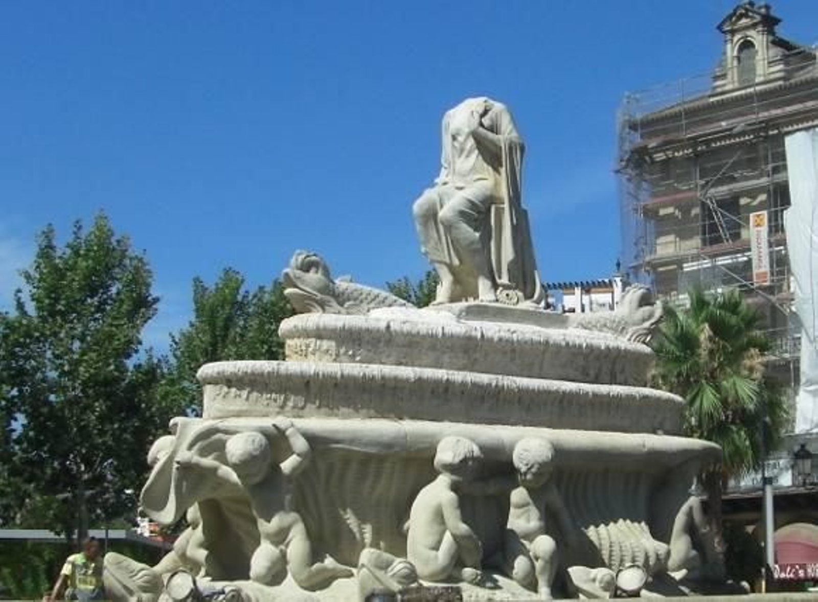 La estatua de la fuente de la Puerta de Jerez pierde la cabeza
