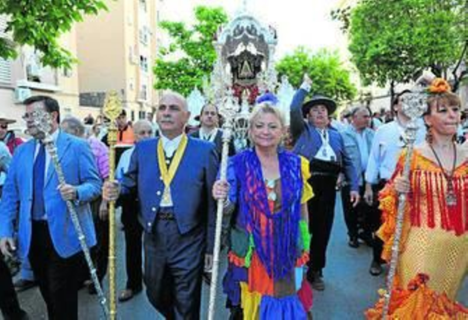 Presume Coria de lucir el segundo simpecado más antiguo de cuantos peregrinan a la aldea almonteña. La plaza donde está su capilla es un parque temático rociero: Bar El Simpecao, Taberna La Rocina. A la hora en la que los boyeros colocan los frontiles a las bestias para iniciar el paseo conjunto de ambas hermandades en las barras de estos locales se confunden el último café y el primer vaso de cerveza. La mañana se presenta calurosa. El solano comienza a soplar y trae ese viento cálido del río por donde cruzan las hermandades que nacieron durante el último tercio de la centuria pasada, cuando el Rocío dejó de ser una romería propia del triángulo formado por Huelva, Cádiz y Sevilla. Llega Fuengirola con sus carretas. Sus peregrinos sestean bajo una frondosa arboleda ajenos al jolgorio que se desparrama por el centro de la antigua Caura: La capilla de la Soledad, la parroquia de la Virgen de la Estrella, el convento de las Hermanas de la Cruz. Este año el Ayuntamiento recibe a la hermandad a los pies de un repostero que cubre las vallas de unas obras que impiden el acceso a la casa consistorial. Bonita metáfora. Ya lo advierte una vecina: "Terciopelos y flores tapan los socavones nuestros de cada día".
