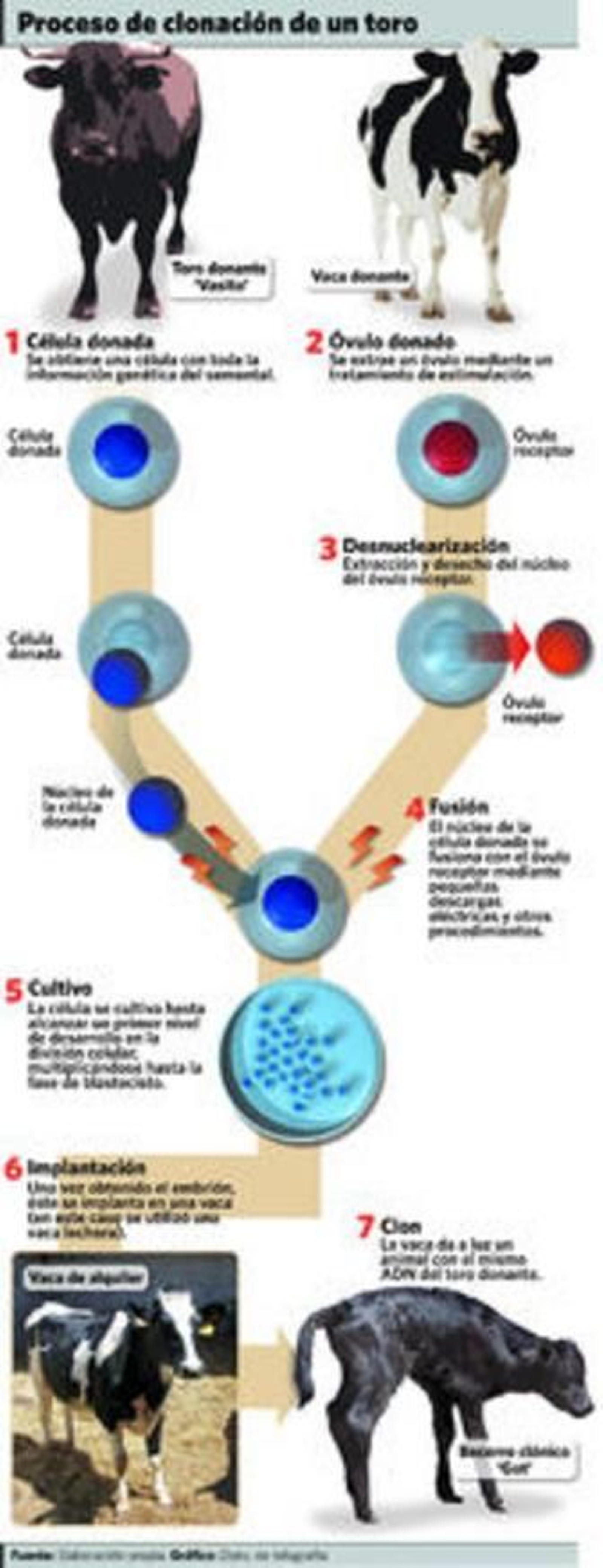 El proceso para conseguir un clon de Vasito no fue fácil. Un equipo compuesto por ocho veterinarios, una bióloga y otros ocho técnicos -liderados por Torrent- extrajeron un pequeño trozo de tejido del preciado semental y de él, una célula cuyo núcleo contenía información genética. A través de vacas que se utilizaron a modo de madres de alquiler, se extrajeron óvulos y se insertó en ellos el núcleo de célula de Vasito, tras lo que comenzó la reproducción de la propia célula hasta formar un embrión. En ese momento, los embriones se introdujeron en las vacas frisonas usadas para el experimento. El experimento se repitió hasta tres veces, siendo Got el único superviviente. Su madre fue la vaca brava Gadesa. Uno de los clones sufrió malformaciones y el otro murió porque nació en agosto bajo unas temperaturas extremas. "Fue un error personal porque no tuve esto en cuenta", reconoció Torrent. La gestación de Got costó un total de 28.000 euros.