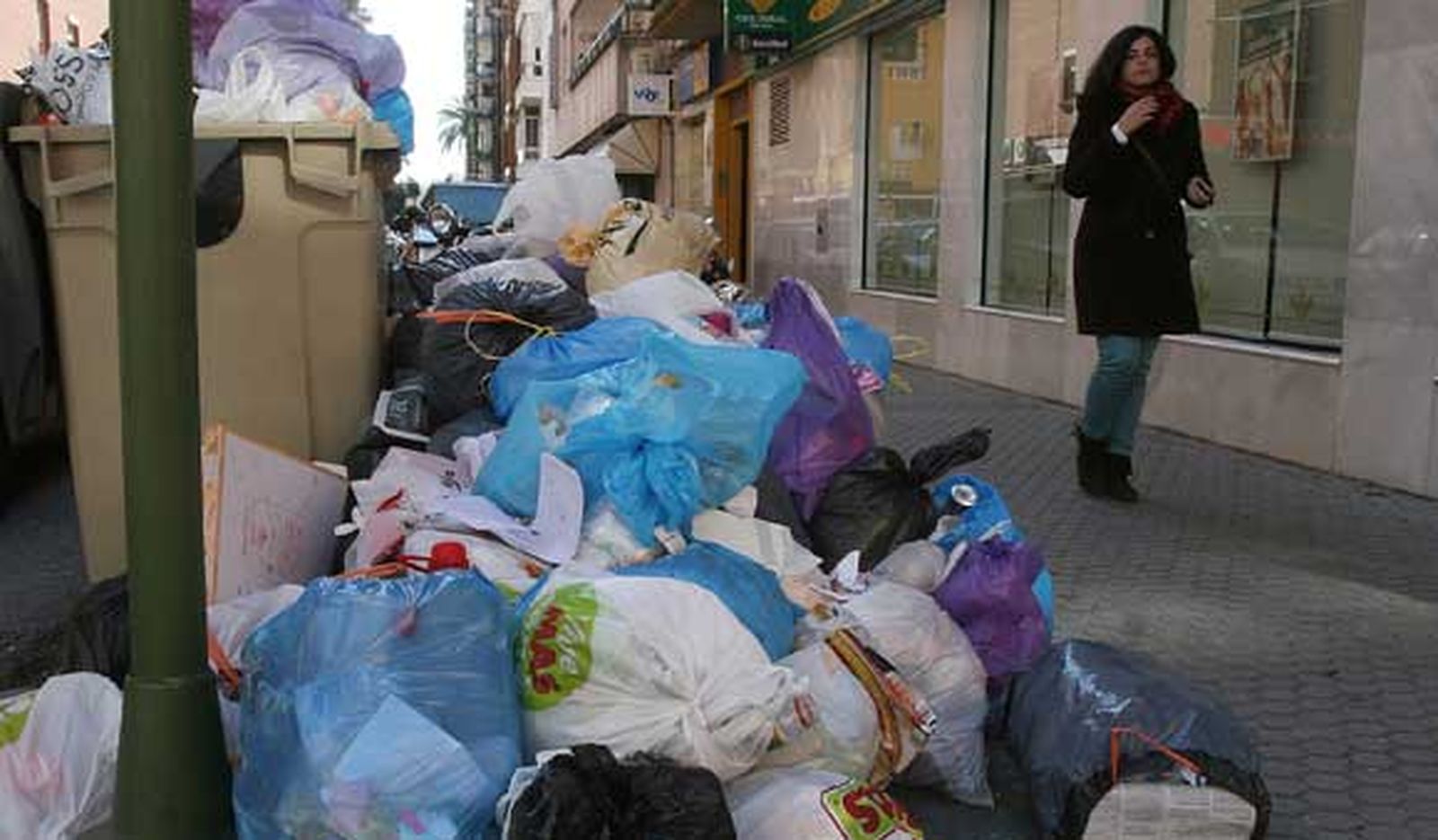 Fitur, Simof y Basur. La huelga de recogida de basuras llega hoy a su décimo día. Hemos pasado de la telebasura a la basura en la tele. Por la Alameda ya se ven habitualmente unidades móviles de las diferentes televisiones: desde Andalucía Directo a Tele 5. Una amiga dice que la han sacado en el programa de Anne Igartiburu hablando de las montañas de basura; otra ha visto las cámaras de La Sexta en la calle Adelantado, en un callejón al que es prácticamente imposible acceder por la acumulación de escombros.