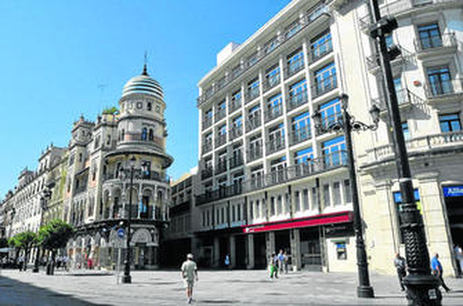 Un fondo de inversión suizo ultima la compra de la antigua sede central del Banco de Andalucía, hoy propiedad al cien por cien del Grupo Banco Popular. Se trata del inmueble situado en los números 4 y 6 de la calle Fernández y González, a la vera misma de la Avenida de la Constitución, con una posición estratégica privilegiada. Las conversaciones están más que avanzadas, incluso fuentes relacionadas directamente con la operación revelan que se ha alcanzado un preacuerdo, aunque no se descarta que finalmente entre en juego otro comprador. Técnicos de un estudio de arquitectura y representantes de la parte compradora ya han visitado el edificio en varias ocasiones en los últimos meses para evaluar sus opciones de uso, pues en la operación es clave el concurso de un operador de suficiente fuerza como para hacerse con el inmueble como arrendatario y afrontar su explotación con fines comerciales. Todo indica, según fuentes relacionadas directamente con la operación, que este operador sería la firma irlandesa Primark, con deseo notorio desde hace años por tener una tienda en Sevilla en lugar preferente del centro histórico. Como se recordará, Primark ya se interesó por la posibilidad de asentarse en el antiguo cuartel de la Policía en la Plaza de la Gavidia, pero el futuro de este inmueble sigue siendo más que incierto, a pesar de que el gobierno de PSOE e IU quiso desbloquear en los últimos meses de mandato su situación desde el punto de vista urbanístico. El intento resultó un fracaso. Y el antiguo cuartel sigue hoy degradándose y en un lamentable estado de conservación.