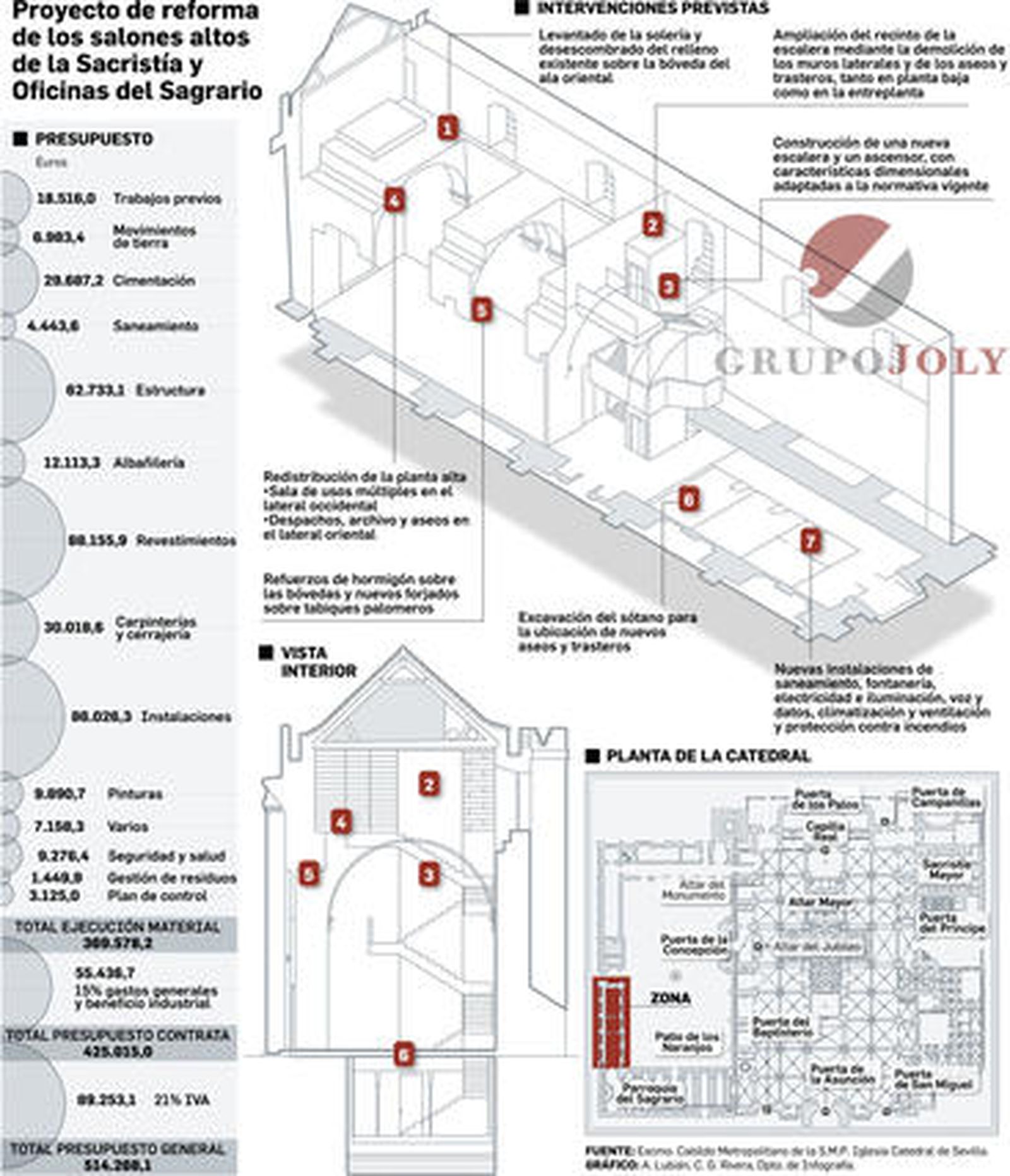 El proyecto básico es obra de los arquitectos Ignacio Villa Barbacid y Javier Haro Geppi, quienes han trabajado a petición del Cabildo Catedral, que en los últimos años, salvo excepciones, tenía paralizadas las grandes obras de restauración por efecto de una crisis económica que derivó en continuas bajadas de visitantes y obligó, por tanto, a los correspondientes ajustes presupuestarios. El Cabildo ya ha solicitado el permiso de obra ante la Gerencia de Urbanismo, que se presume favorable después de que la Junta haya dado el preceptivo visto bueno, pues la Parroquia del Sagrario forma parte del Bien de Interés Cultural (BIC) de máxima catalogación que es la Catedral de Sevilla.