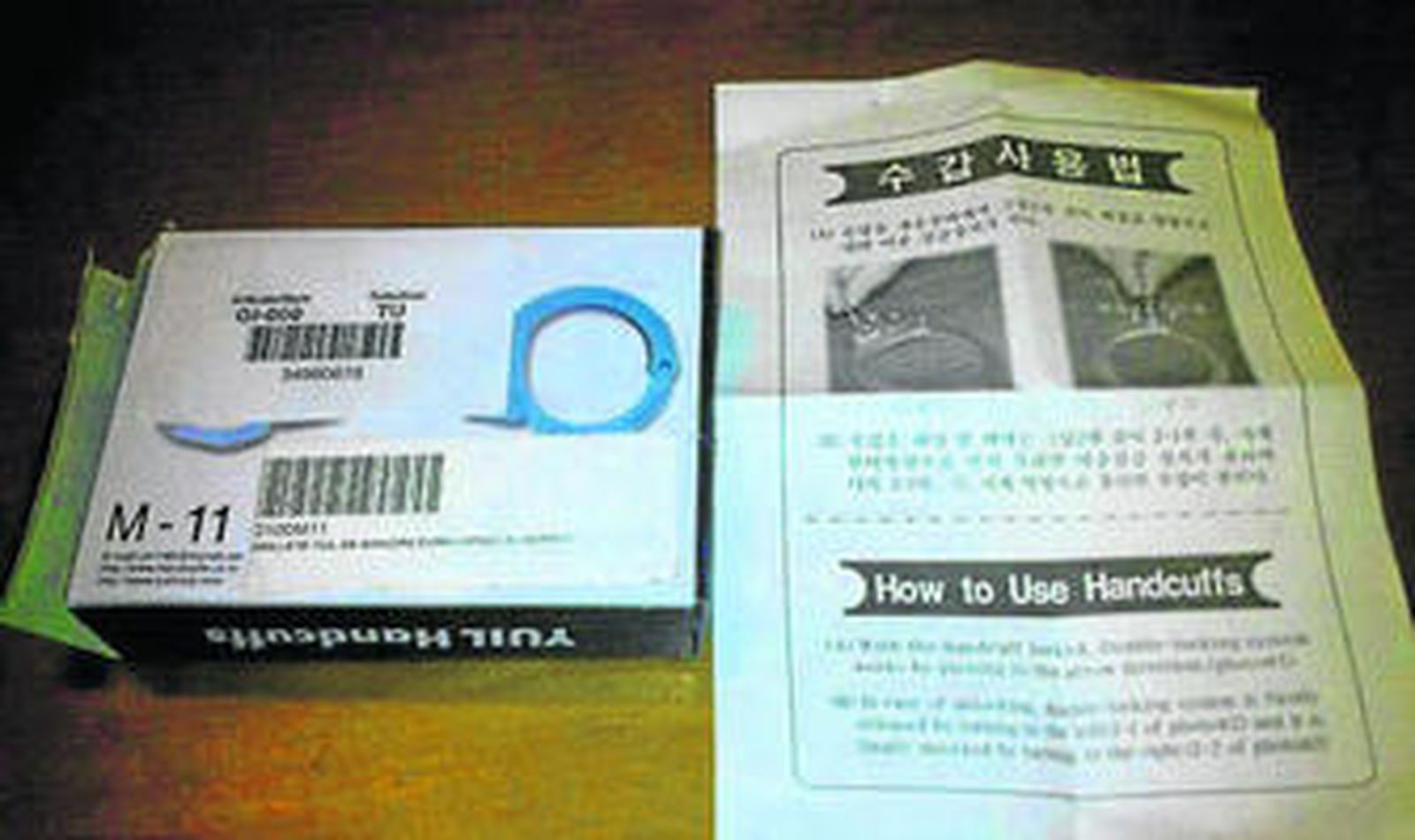 Los grilletes de la Policía Local, sin el sello de la UE ni instrucciones en español