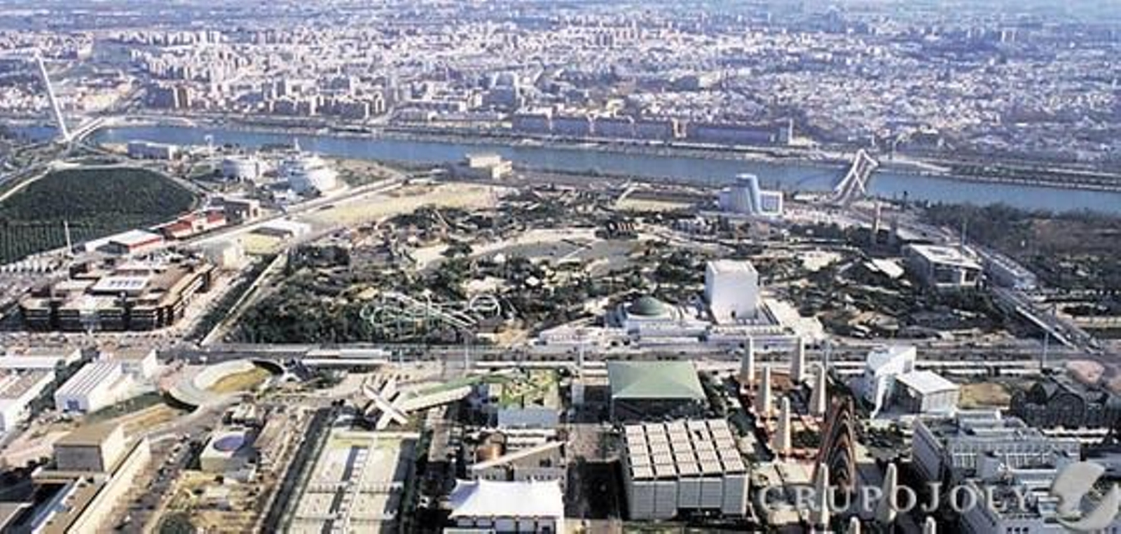 El recinto oficial de la Muestra Universal (215 hectáreas) se construyó como una especie de urbe gemela situada a las mismas puertas de la Sevilla histórica, de la que era su antítesis estética. Su planificación territorial fue el resultado de una síntesis de ideas urbanísticas divergentes, lo que desde el principio provocó problemas de integración urbana que, si bien no afectaron al certamen, se intensificaron tras la venta al mejor postor de los suelos de la Isla.