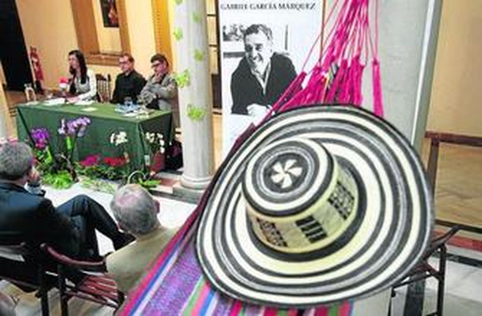 En el centro del patio del pabellón colocaron una hamaca y un sombrero, guiños a Macondo. "El realismo mágico me produce urticaria", dice José Manuel Camacho. "En España no creó una escuela realista-mágica, pero sí una legión de lectores y de amigos, últimamente algunos amigos bastante sospechosos".