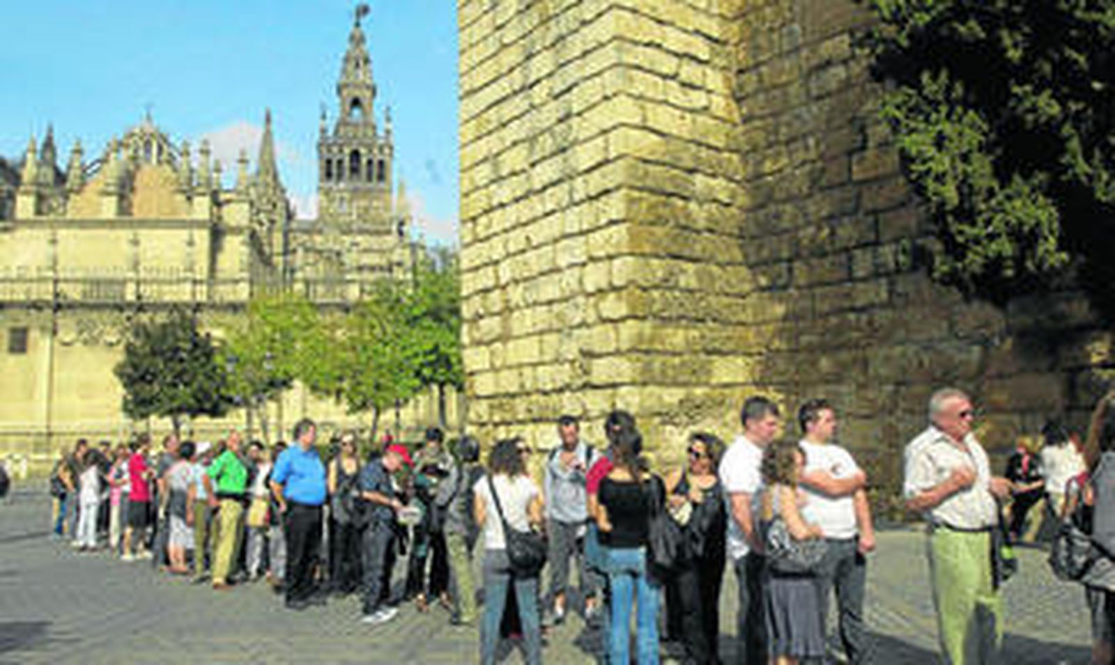 Un puente que roza el lleno. Los hoteles sevillanos han registrado una media de ocupación del 85% desde el pasado sábado, según la consulta realizada por este periódico a una decena de establecimientos. Las buenas temperaturas registradas en estos cuatro días y las ofertas lanzadas por varias cadenas hoteleras han logrado estas cifras. Entre los turistas que se han desplazado a la capital andaluza sigue siendo importante la afluencia de extranjeros, especialmente franceses, ingleses e italianos, aunque también ha sido notoria la llegada de visitantes nacionales. Esta presencia también se ha notado en la entrada a monumentos como el Alcázar, donde en sólo tres días se han superado las 12.000 visitas.