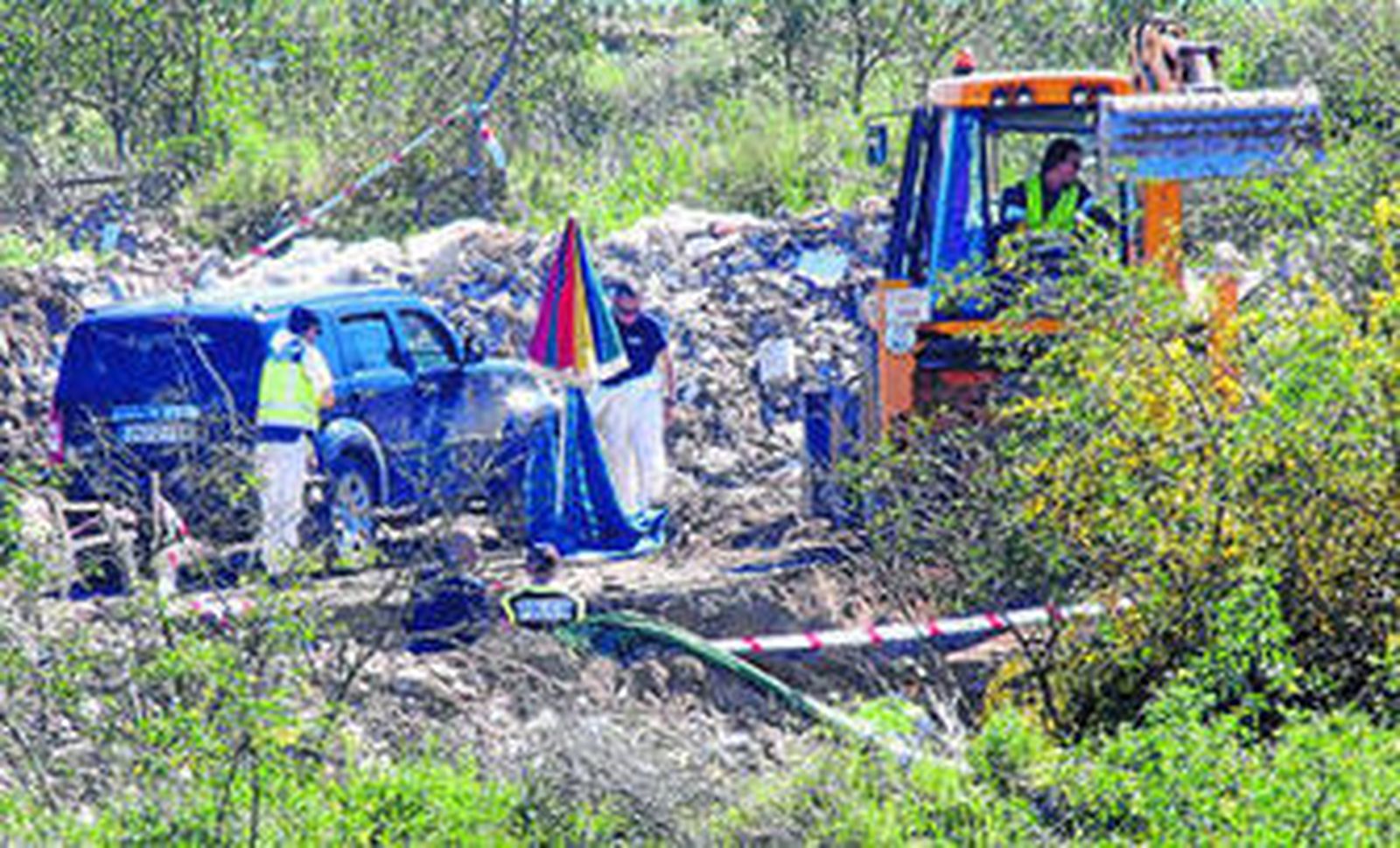 La Policía continúa la búsqueda del cuerpo de la joven asesinada el 24 de enero de 2009 en esta escombrera situada entre Sevilla y Camas, muy cerca del puente desde el que el asesino, Miguel Carcaño, aseguró que la arrojaron en su primera versión. La Policía llegó a este lugar por el análisis de la posición del teléfono móvil de Carcaño y reafirmó su sospecha tras someter al asesino a la prueba del P300.