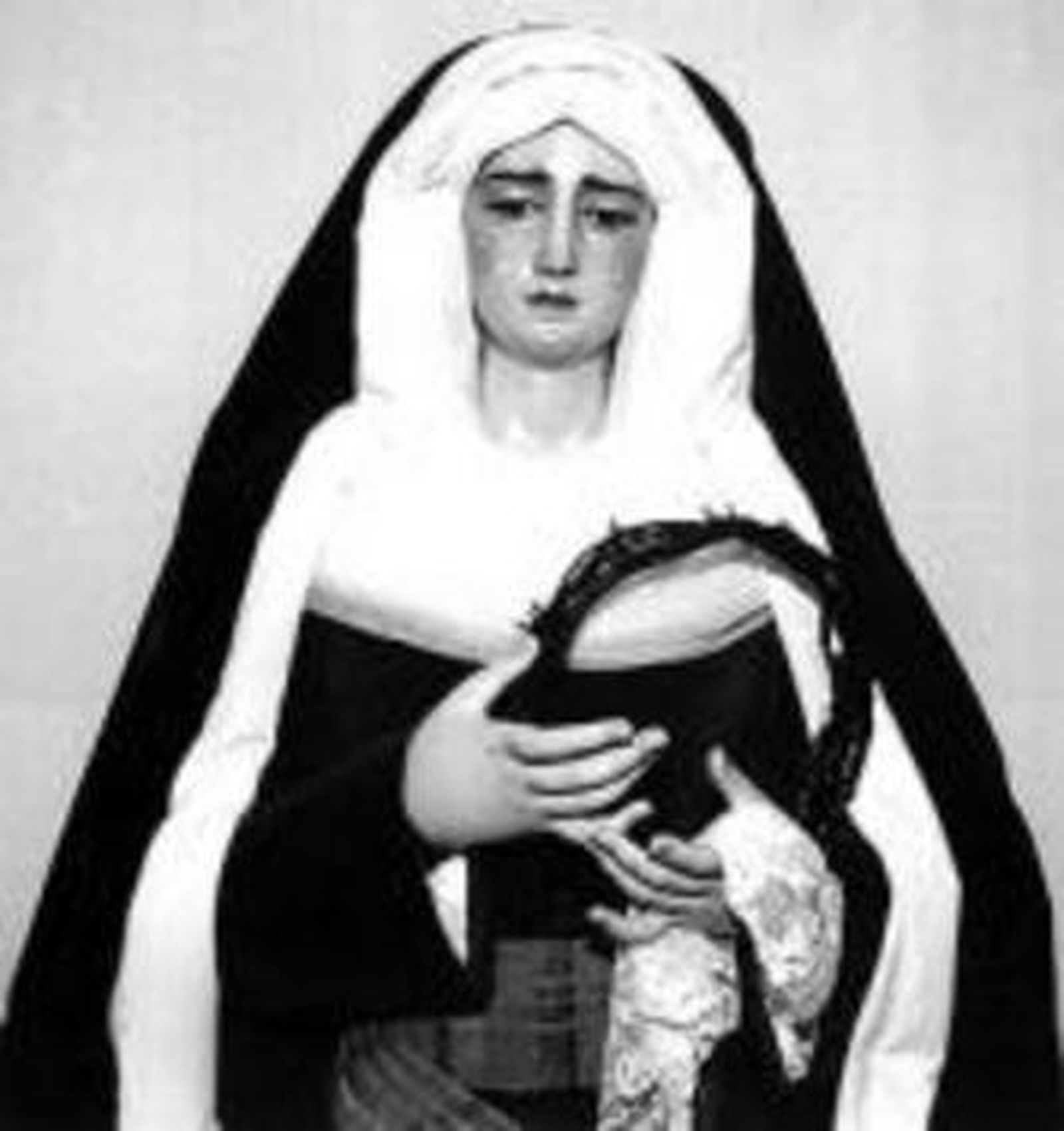 Una de las grandes pérdidas aconteció recién instaurada la Segunda República. Los antiguos titulares de la Hiniesta quedaron reducidos a cenizas tras el incendio de San Julián el 8 de abril de 1932. Aquel día se perdía para siempre la primitiva Hiniesta Gloriosa, la Dolorosa de la corporación y el Cristo de la Buena Muerte, atribuidos a Martínez Montañés y Felipe de Ribas, respectivamente. Según la crónica del periodista coetáneo Luis J. Pedregal, para la ejecución de las nuevas tallas se convocó un concurso, del que salió ganador Antonio Castillo Lastrucci. Poco se sabe de las técnicas que empleó el ya por entonces conocido imaginero para reproducir la Dolorosa perdida. Por contra, según confirma José Roda Peña, profesor titular de Historia del Arte en la Universidad de Sevilla, cuando por segunda vez la hermandad pierde sus imágenes en el incendio de San Marcos en 1936 es el propio Castillo el que utiliza "la técnica de saca de puntos con el molde original que había guardado" para reproducir la imagen que talló en 1933 y que se había consumido entre llamas. Por tanto, ya en plena República, Castillo Lastrucci -ante la tensión social reinante- es consciente de la necesidad de crear un vaciado que facilite la reproducción del icono.