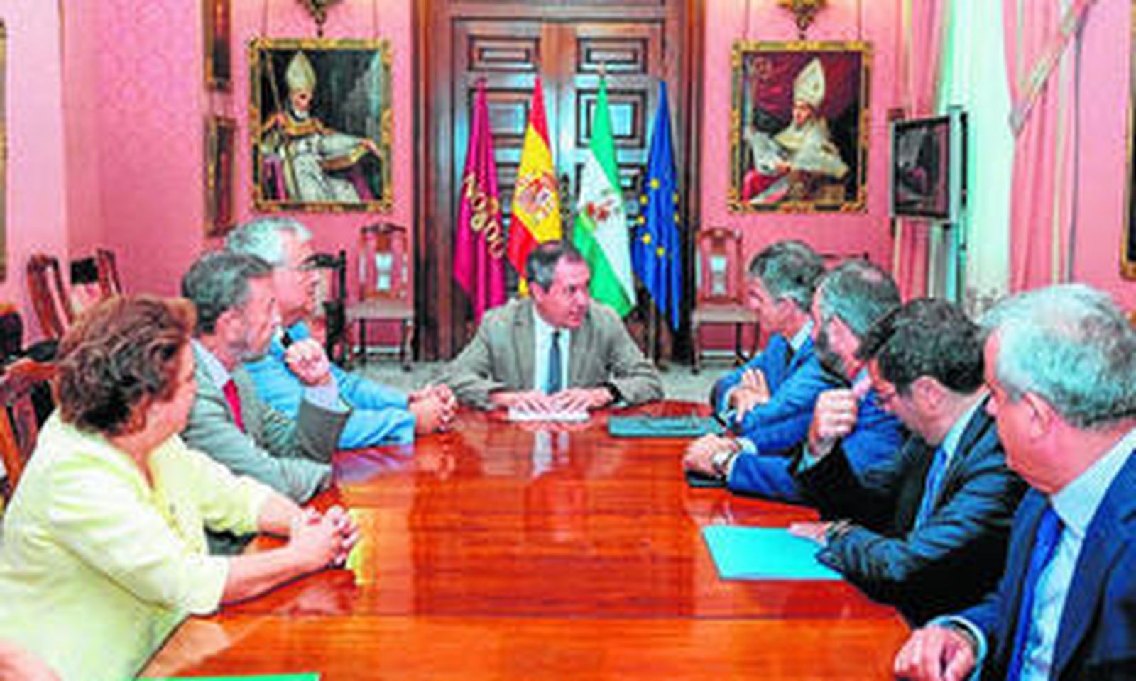 El alcalde de Sevilla, Juan Espadas, el presidente de la Autoridad Portuaria, Manuel Gracia, y el consejero de Economía, Antonio Ramírez de Arellano, han mantenido un encuentro con los representantes de la división industrial eólica de Gonvarri Steel Industries, GRI Renewable Industries, que tiene prevista su próxima implantación en una superficie de 159.700 metros cuadrados en el Puerto de Sevilla, que obtuvieron a través de una concesión administrativa.