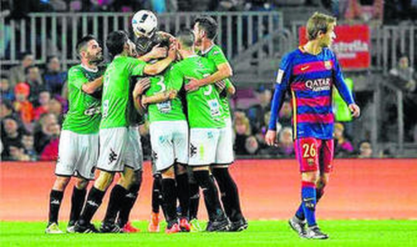 Recuerdo. Juanfran es el último sevillano que marca un gol en el Camp Nou. 30 parientes de Villanueva del Río y Minas saltaron en el Camp Nou cuando anotó el 2-1 del Villanovense