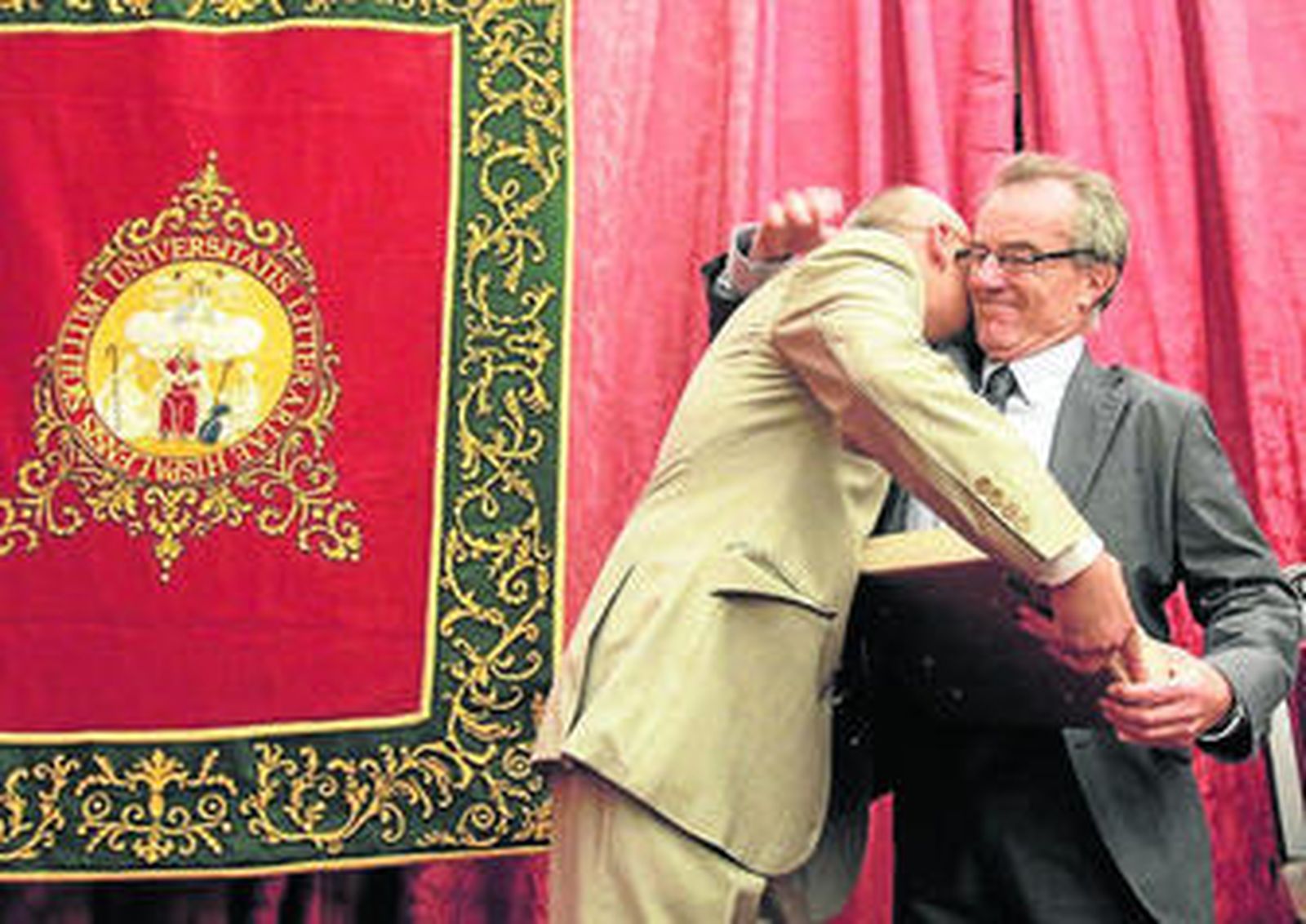 "El concepto de jubilación nunca me ha entrado en la cabeza; es anticonstitucional; a lo mejor acabo pleiteando". Con estas palabras, medio en broma medio en serio, entre las carcajadas del público, el catedrático de Derecho Constitucional Javier Pérez Royo aceptaba este jueves por la tarde en el paraninfo de la Universidad de Sevilla el homenaje que discípulos, compañeros y amigos le rindieron con motivo de su jubilación como docente de la Hispalense.