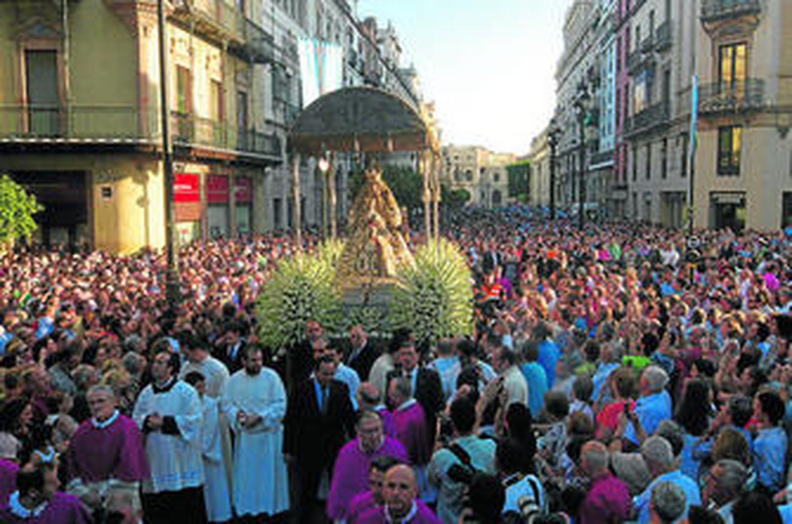 Como cada año, la ciudad se apresta a vivir la festividad de la Asunción de la Virgen con la salida procesional de su Patrona, la Virgen de los Reyes. La procesión se desarrollará sin cambios, como es habitual. A las 8:00, la Patrona saldrá por la Puerta de los Palos para recorrer las gradas bajas de la Catedral durante una hora y media, aproximadamente. El paso irá adornado con las tradicionales varas de nardos, unas mil, procedentes de Cabra y Chipiona y 60 decenas de claveles blancos de Chipiona. Como cada año los hermanos Ramos, siguiendo la tradición familiar, serán los encargados de exornar el paso. Serán entre 250 y 300 miembros de la asociación de fieles los que participen con cirios en la procesión. Muchos de ellos jóvenes. Hoy, a las 20:30, se celebra el último día de la novena que ha presidido el arzobispo, monseñor Asenjo. La predicación correrá a cargo del canónigo y capellán real, Antero Pascual. La Virgen ya lucirá el manto de salida y el pecherín que de brillantes.