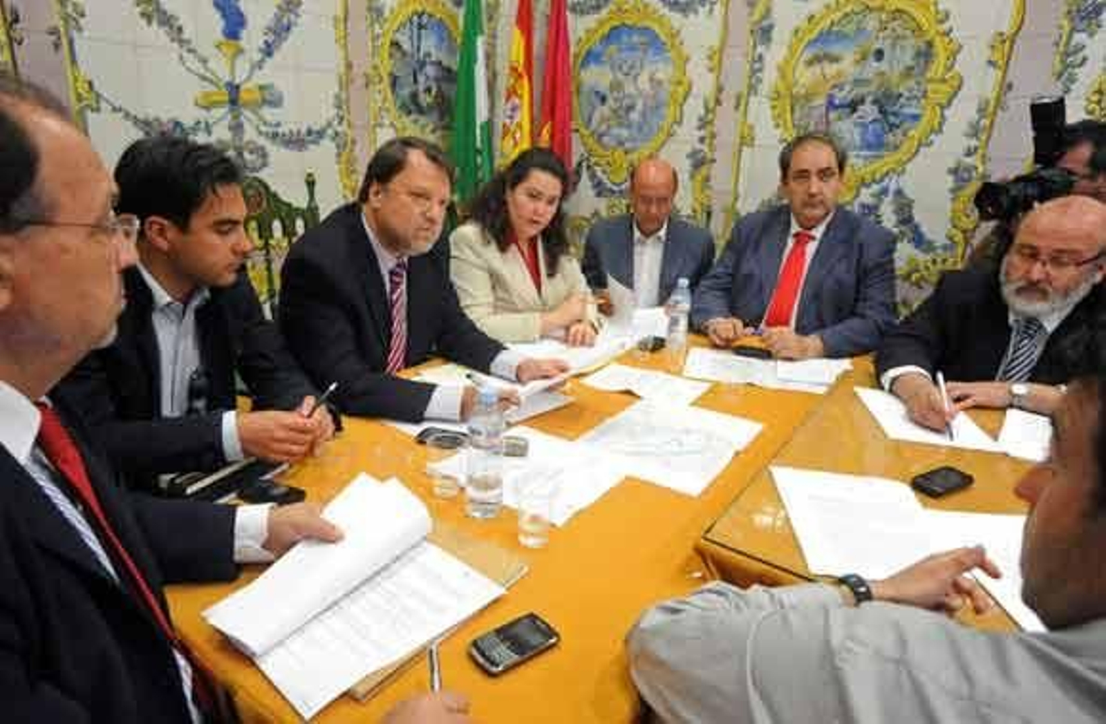 El alcalde de Sevilla, Alfredo Sánchez Monteseirín, analizó este lunes el documento inicial de la "segunda fase" del Plan de Movilidad del distrito Triana junto a la delegada de Educación y del propio distrito, Esther Gil, los delegados de Movilidad y Convivencia y Seguridad, Francisco Fernández y Alfonso Mir respectivamente, el portavoz del Grupo Socialista, Alberto Moriña, y técnicos de las delegaciones implicadas.