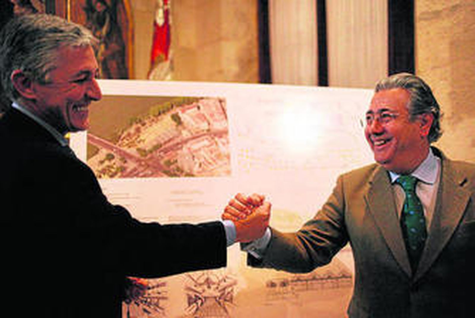 El alcalde de Sevilla, Juan Ignacio Zoido (PP), acompañado por el concejal de Urbanismo y Medio Ambiente del Ayuntamiento hispalense, Maximiliano Vílchez (PP), anunció ayer la recuperación de las naves del Barranco mediante la creación de un mercado gourmet, que abrirá sus puertas previsiblemente en verano de 2013 y dará empleo directo a unas 130 de personas durante su construcción y explotación.
