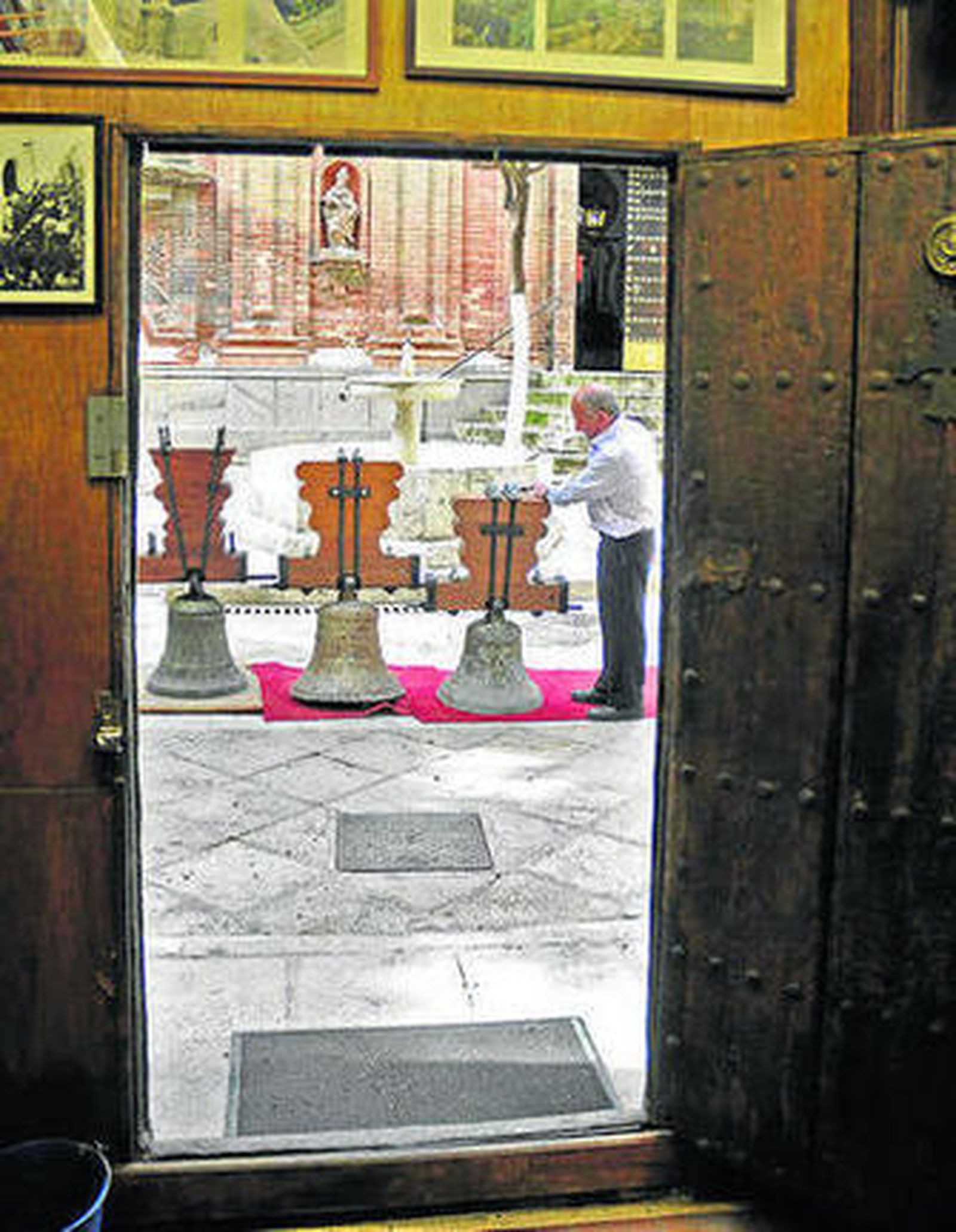 La familia Mendoza acaba de terminar la restauración de las campanas de la basílica · La intención de la hermandad es que se puedan contemplar en el atrio antes de ser colocadas de nuevo en la espadaña.