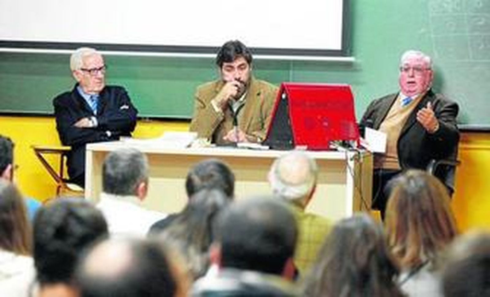 Los alumnos disfrutaron con el viaje de Navarro y De la Hera al México de Hidalgo, Morelos e Iturbide, el personaje de realismo mágico convertido en el emperador Agustín I. Con el clima creado en Nueva España por el dictamen de Juan D'Onojú, militar y gobernador que pese a su apellido era sevillano de cuna. María Eugenia Petit-Breuilh Sepúlveda, chilena, profesora del departamento, agradeció las aportaciones de autor y presentador y emplazó al segundo, discípulo de Giménez Fernández en Derecho Canónico, a otra clase práctica. Navarro fue requerido al final por Fernando Sabido, extremeño, descendiente del intendente Joseph Sabido de Vargas.