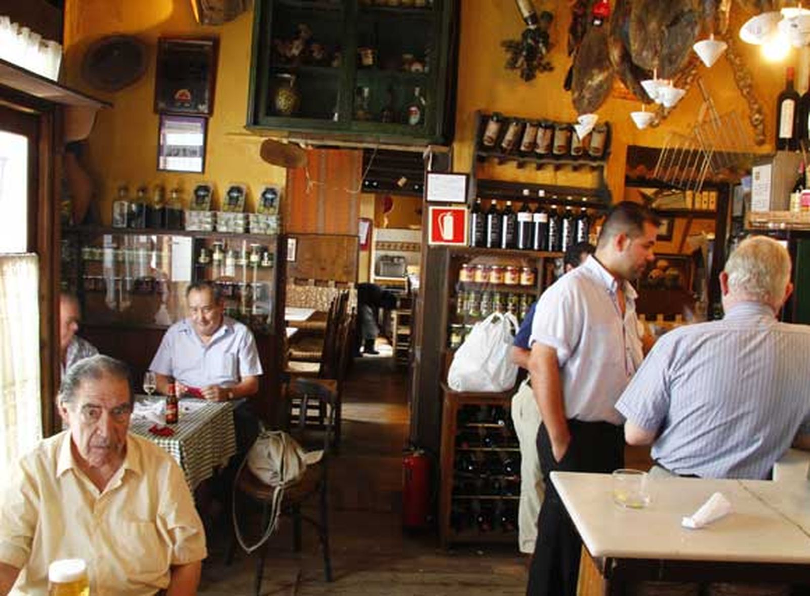 La Abacería de San Lorenzo tiene entradas por Marqués de la Mina y por Teodosio: por una de las puertas multiplica los panes, por la otra los peces. Son las dos calles en las que atiende al público Rafita, otro de los bares de referencia. Frente a la Abacería vivía el fotógrafo Atín Aya, cuyo catálogo de la exposición Paisanos está en la entrada del bar Eslava. "Atín venía mucho por aquí", dice Ramón, "igual que su amigo Juan Maestre, que murió antes que él y que tenía una vez a la semana una tertulia de pintores".