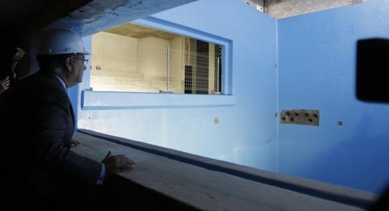 Las obras avanzan a buen ritmo desde marzo pasado, fecha en la que se hizo cargo la nueva empresa. El gigantesco tanque de tiburones, el más grande de España y uno de los mayores de Europa con sus nueve metros de profundidad y tres millones de litros de agua, está terminado y pintado de azul a falta de colocar las pantallas transparentes acrílicas y luego del llenado. La rueda de prensa se celebró en el túnel de visión panorámica de los tiburones, también pendiente de colocar las pantallas.