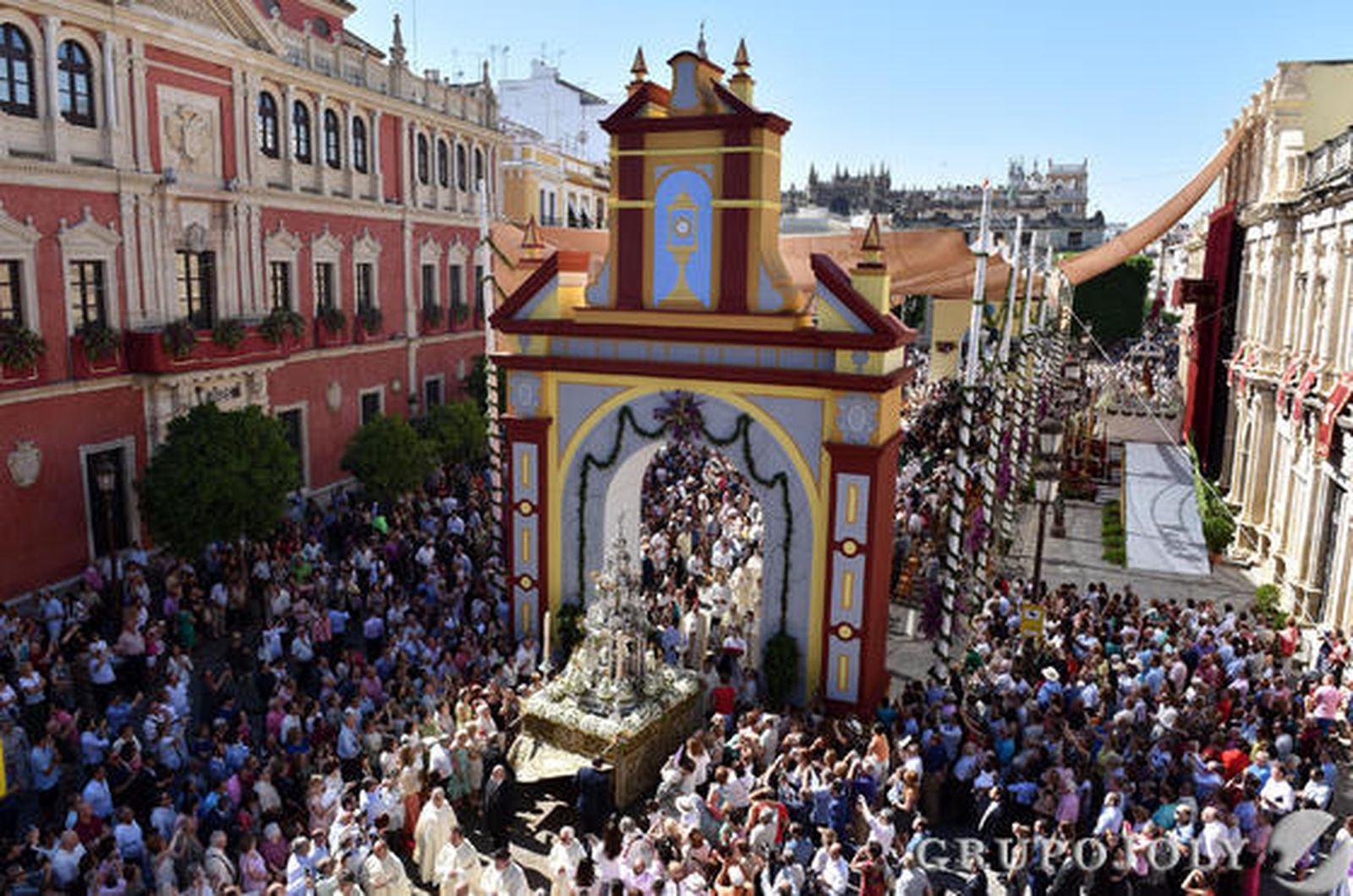 Una procesión del Corpus con pocas novedades. La Hermandad de Pasión y Muerte, que realiza su estación de penitencia a la parroquia de Santa Ana en la noche del Viernes de Dolores, será la encargada este año del paso de Santa Justa y Rufina. Las cofradías trianeras se turnan en esta labor y, por primera vez, le ha tocado a esta corporación de vísperas. Será ésta prácticamente la única novedad de una procesión poco dada a los cambios. Fuera del cortejo, hay que destacar el altar de las Siete Palabras en la Plaza del Salvador con el misterio de la Conversión de Santa Teresa que ha salido de manera extraordinaria a iniciativa de los carmelitas del Santo Ángel con motivo del V centenario de su nacimiento.