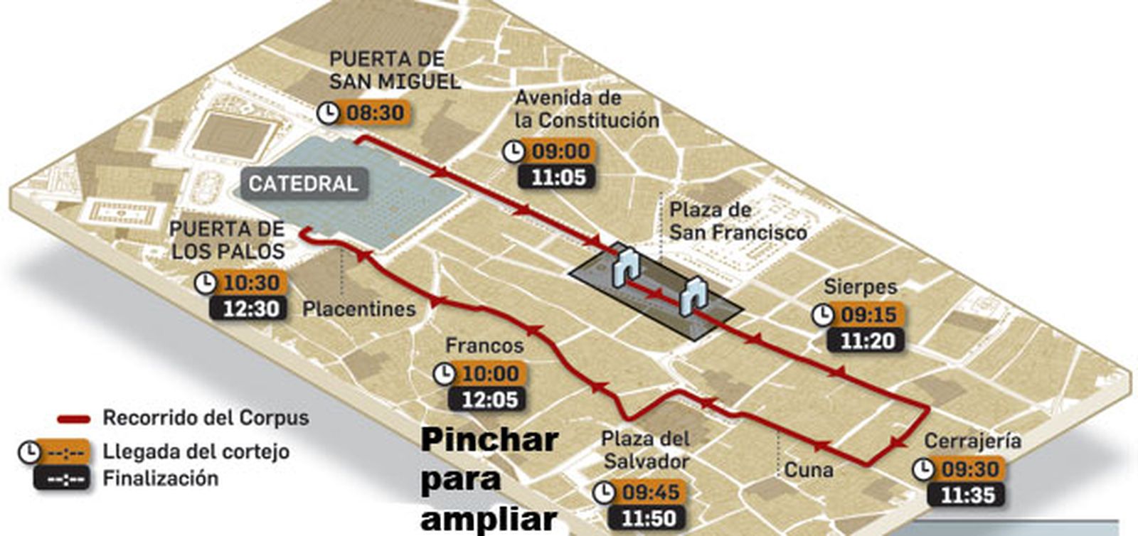 El cortejo empezó a salir a las 8:30 desde la Catedral, momento en el que empezó la misa oficiada por monseñor Asenjo. Pasadas las 12:30, la Custodia atravesaba la Puerta de Palos, poniendo fin a una mañana festiva y calurosa.