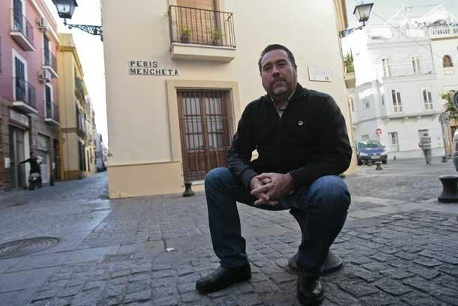La Hermandad de las Penas de San Vicente ha pedido la medalla de la ciudad para Manuel Pérez Tejera, el vecino de esta casa donde hubo una fonda y una administración de lotería. José Manuel Tejera cumplió en febrero 50 años. Tomó el testigo de la banda en noviembre de 2006, el día que se recogió la Reina de Todos los Santos.
