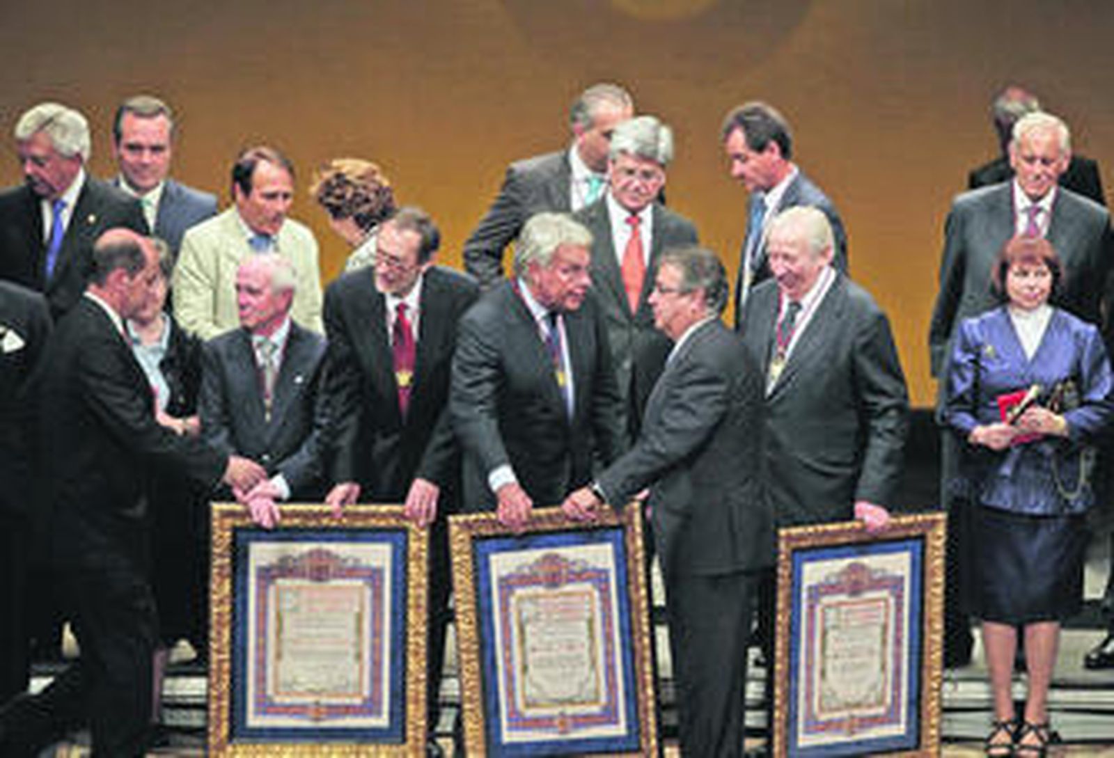 Los trajes de los premiados se arrugaron en la retahíla de glosas. Entre ellos, un sastre en quinta generación de sastres, maestro del chaqué y de los uniformes de maestrantes. Fernando Rodríguez Ávila le podía tomar medidas a Luis Yáñez-Barnuevo, a quien alguien le atribuyó en una ocasión linaje de maestrantes. Zoido abrazó a Ventura Rico, de la Orquesta Barroca: ha sido juez como su padre, Manuel Rico Lara.