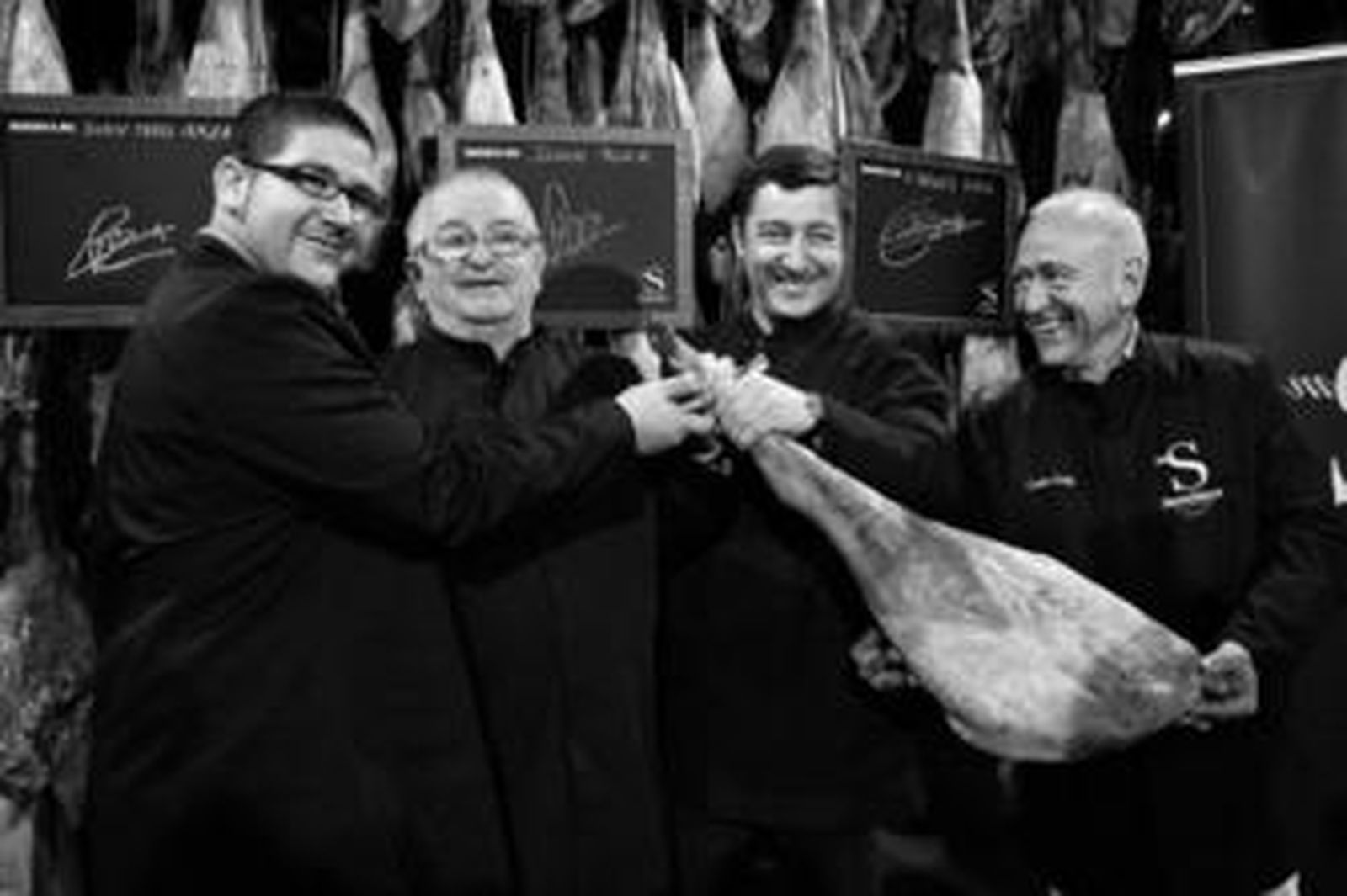Cuatro de los chefs españoles más reconocidos presentaron sus reservas de jamón de Sierra Mayor de Jabugo, empresa con sede social en Sevilla