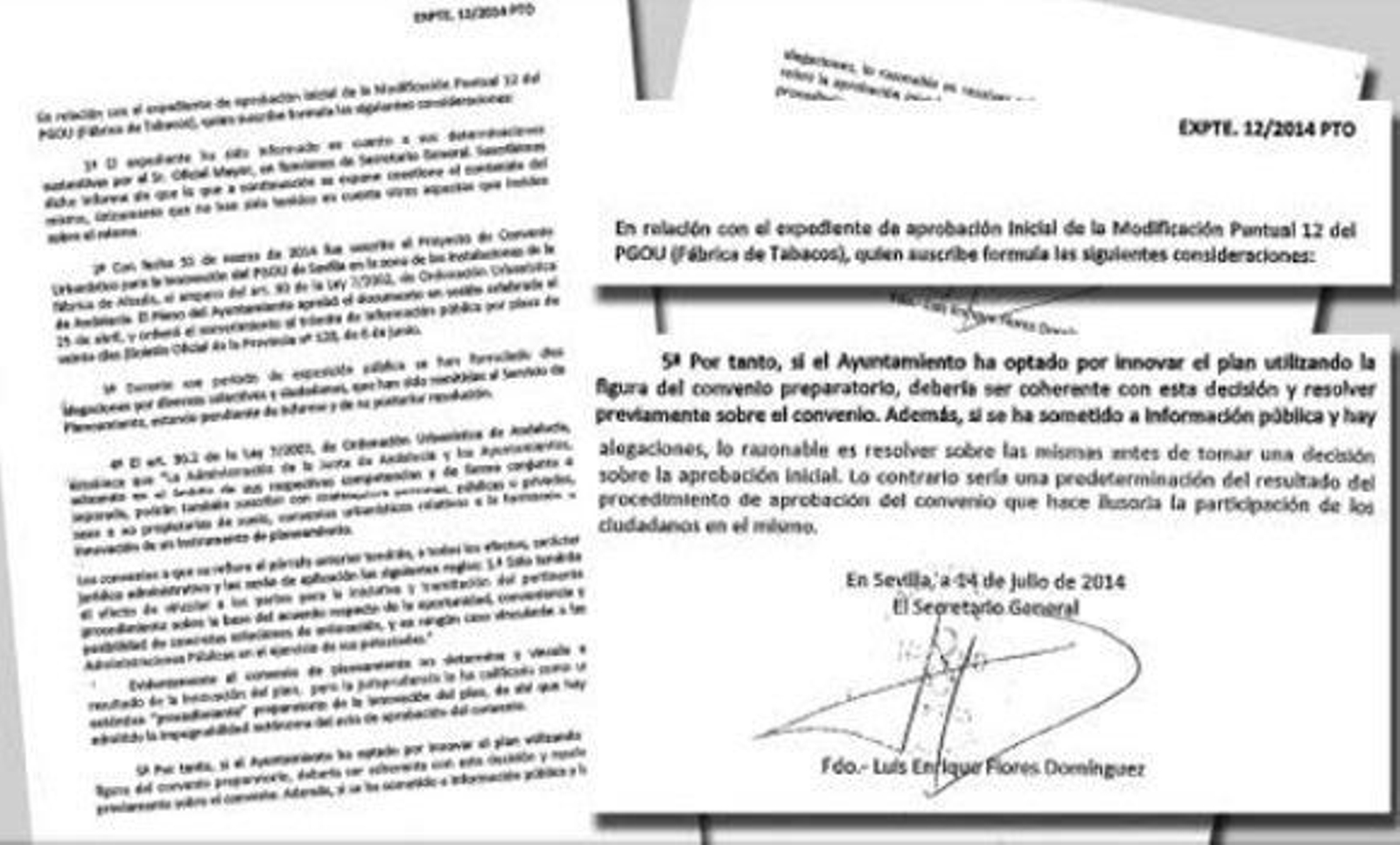 El secretario Luis Enrique Flores concluye que seguir adelante con la aprobación inicial de la reforma del PGOU sin cerrar definitivamente el convenio sería convertir en "ilusoria la participación de los ciudadanos en el mismo". La respuesta puede leerse en el documento que reproducimos junto a estas líneas.