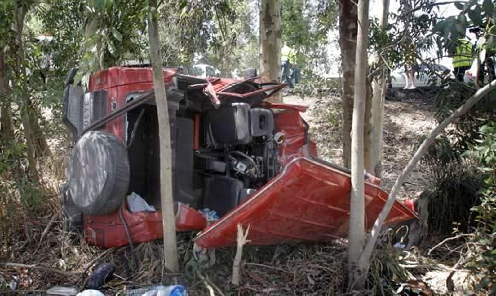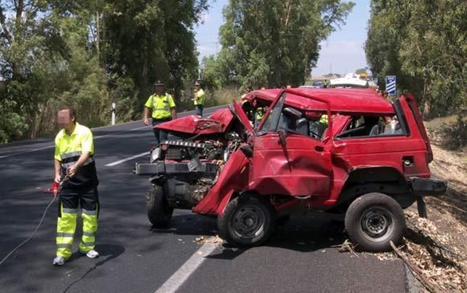 Así lo avala el hecho de que sólo un coche se viera implicado en el accidente. El vehículo, un todoterreno Mitsubishi Montero del año 1989, se salió de la carretera hacia la derecha por causas que se desconocen, volcó, cayó por un pequeño terraplén y terminó chocándose frontalmente contra un eucalipto. El accidente se produjo en sentido Sevilla. El coche quedó completamente destrozado, con el techo arrancado y con la parte delantera hundida. En el siniestro fallecieron en el acto dos jóvenes de 25 años: un varón cuya identidad responde a las iniciales A. A. R. y una chica identificada como C. I. G. R. El varón era natural de Olesa de Montserrat (Barcelona) y la joven de Sevilla. El vehículo estaba matriculado en la capital andaluza.