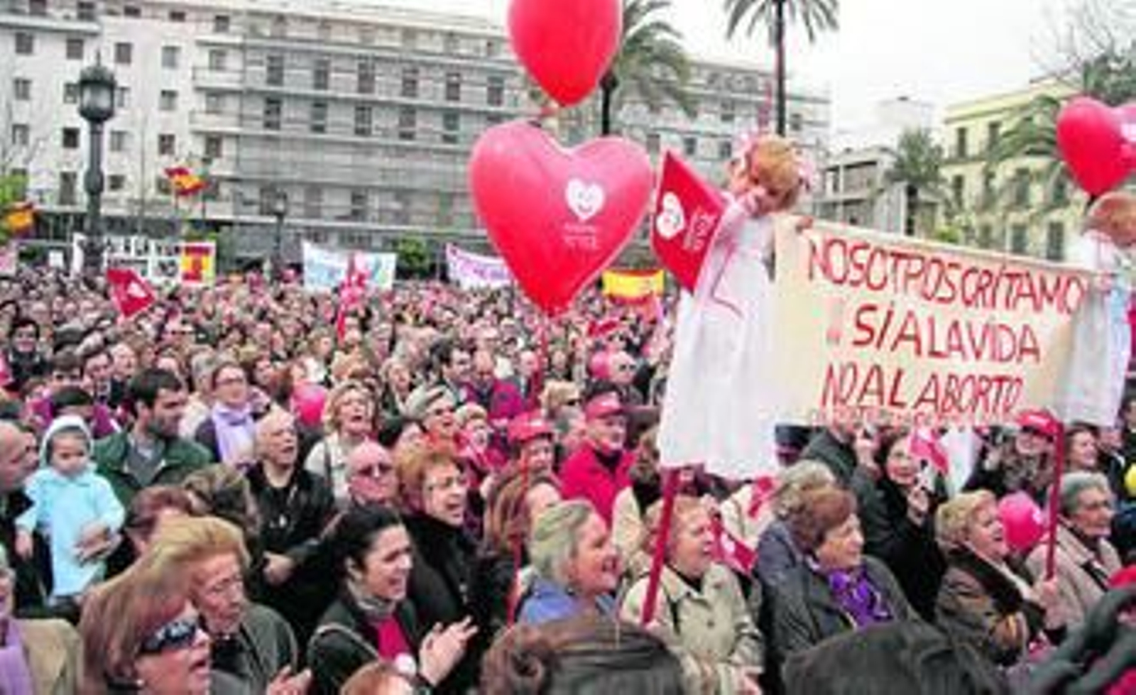 Entre el público, mucha gente mayor y muchos matrimonios jóvenes. El lema de la concentración: España dice sí a la vida. El objetivo: posicionarse públicamente una vez más en contra la ley de plazos que regula el aborto y en favor de una normativa que ayude a la mujer sin recursos a tener a su hijo. "Y que le evite las secuelas catastróficas que sufrirá toda su vida si aborta", alegaron los manifestantes.