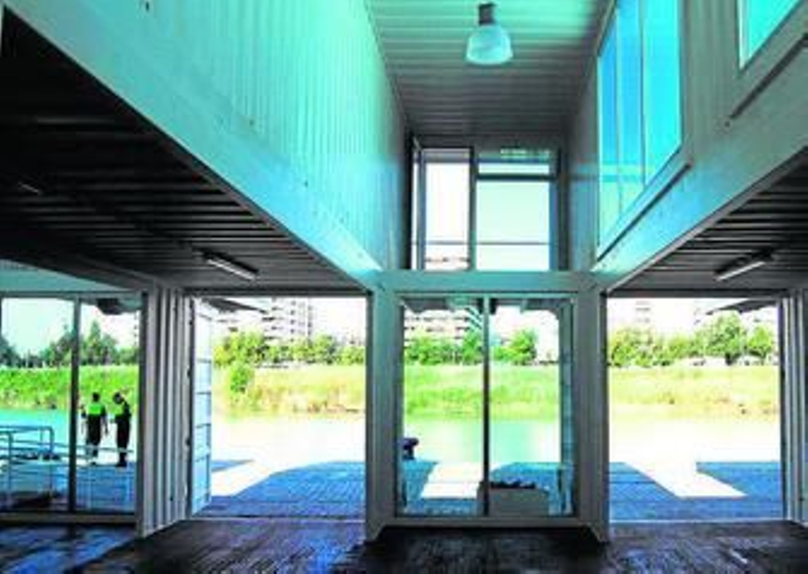 Este tipo de estructuras modulares abaratan el coste de un edificio un 50% más que si se hacen con otro material convencional, aseguran los tres arquitectos. Eso explica los casi 300.000 euros que ha costado todo: diseño, construcción y montaje. Sale a 600 euros por metro cuadrado, toda una ventaja frente a las construcciones tradicionales. Queda por colocar el rótulo que da nombre al edificio, añadir unos aseos en un contenedor anexo, ya que la terminal también es ampliable en horizontal añadiéndole las estructuras necesarias. Es un edificio con estética y funcionalidad de sobra para acoger exposiciones.