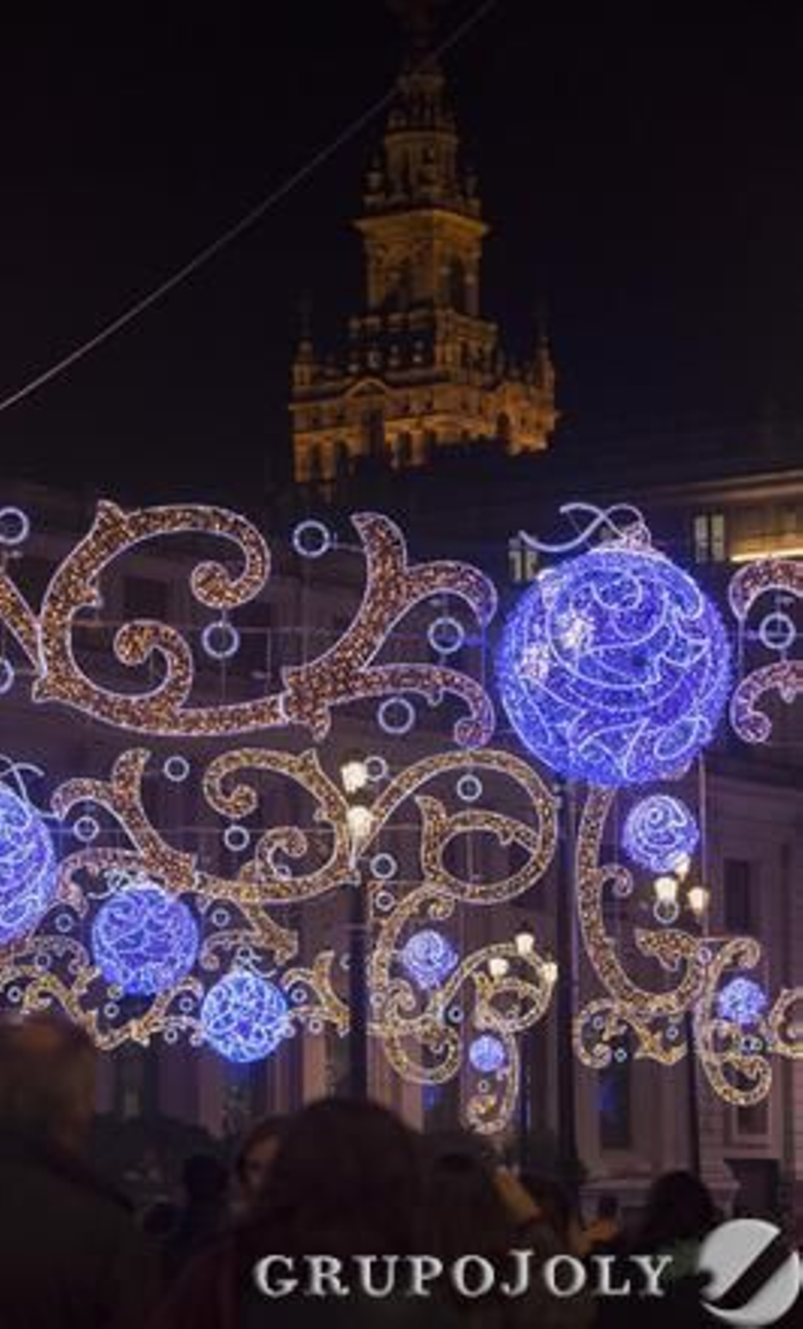 Pasaban las 18:30 cuando el alcalde inauguró oficialmente la Navidad en Sevilla. Los motivos religiosos brillan por su ausencia en la iluminación.
