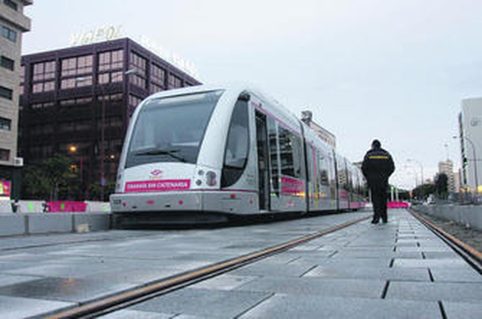 Diciembre de 2010 tampoco se cumplirá como fecha de apertura. La obra civil de la ampliación del tranvía está prácticamente finalizada (al 98%), con todas las vías colocadas desde el Prado a San Bernardo. El transporte ha ganado 885 metros más que elevarán el recorrido total a 2,2 kilómetros. Unos tramos son de césped (pendiente de ser plantado aún) y otros de pavimento gris (pendiente de finalización), todos ellos por enmedio de la calzada.
