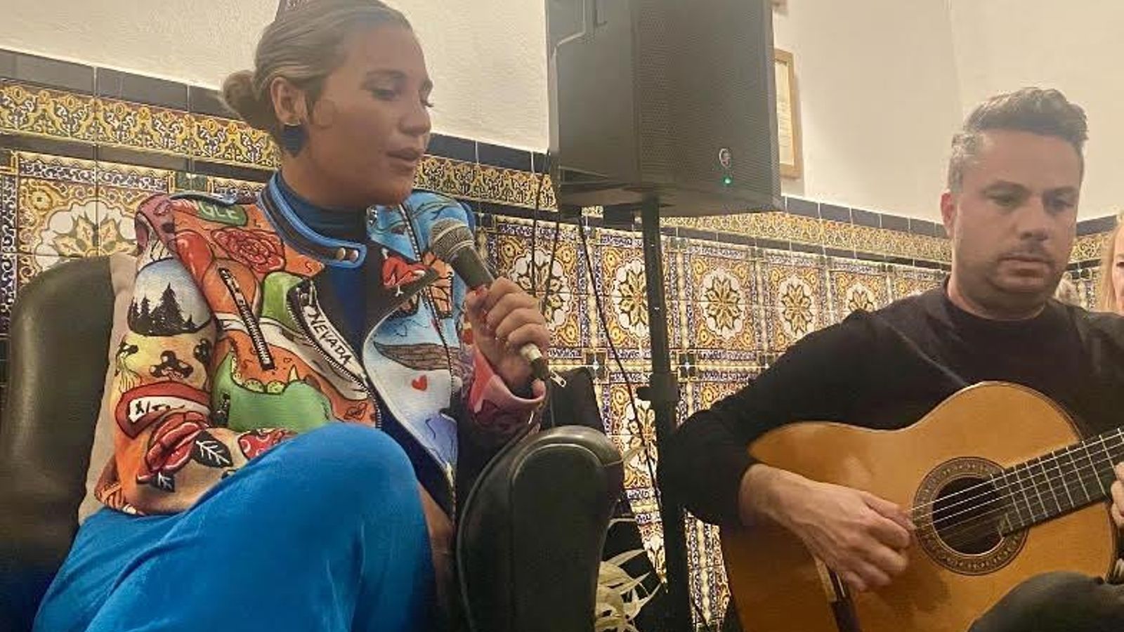 Un acontecimiento para el recuerdo. Laura Gallego puso bocabajo el Casino de Cazalla de la Sierra. Lleno a reventar, incluida la planta alta. Víctor Torres a la guitarra. El espectáculo a beneficio de las obras de reparación de la Parroquia de Nuestra Señora de la Consolación fue conducido por el periodista Diego J. Geniz, que hilvanó una amena entrevista a la cantante entre cada interpretación. Sentados en mullidas butacas, como si estuvieran solos en una charla de mesa de camilla, con una copita de guinda en armonía con el exorno floral. Un formato original que dio mucho juego y mantuvo la atención de los asistentes. Al menos de los que pudieron entrar, todo sea dicho, pues hubo público que se quedó fuera al estar el aforo completo. El escenario, adornado con flores de pascua, estaba presidido por el azulejo de la Virgen del Monte, patrona de la localidad, así como por el colocado el pasado agosto en recuerdo de la visita del arzobispo de Sevilla.