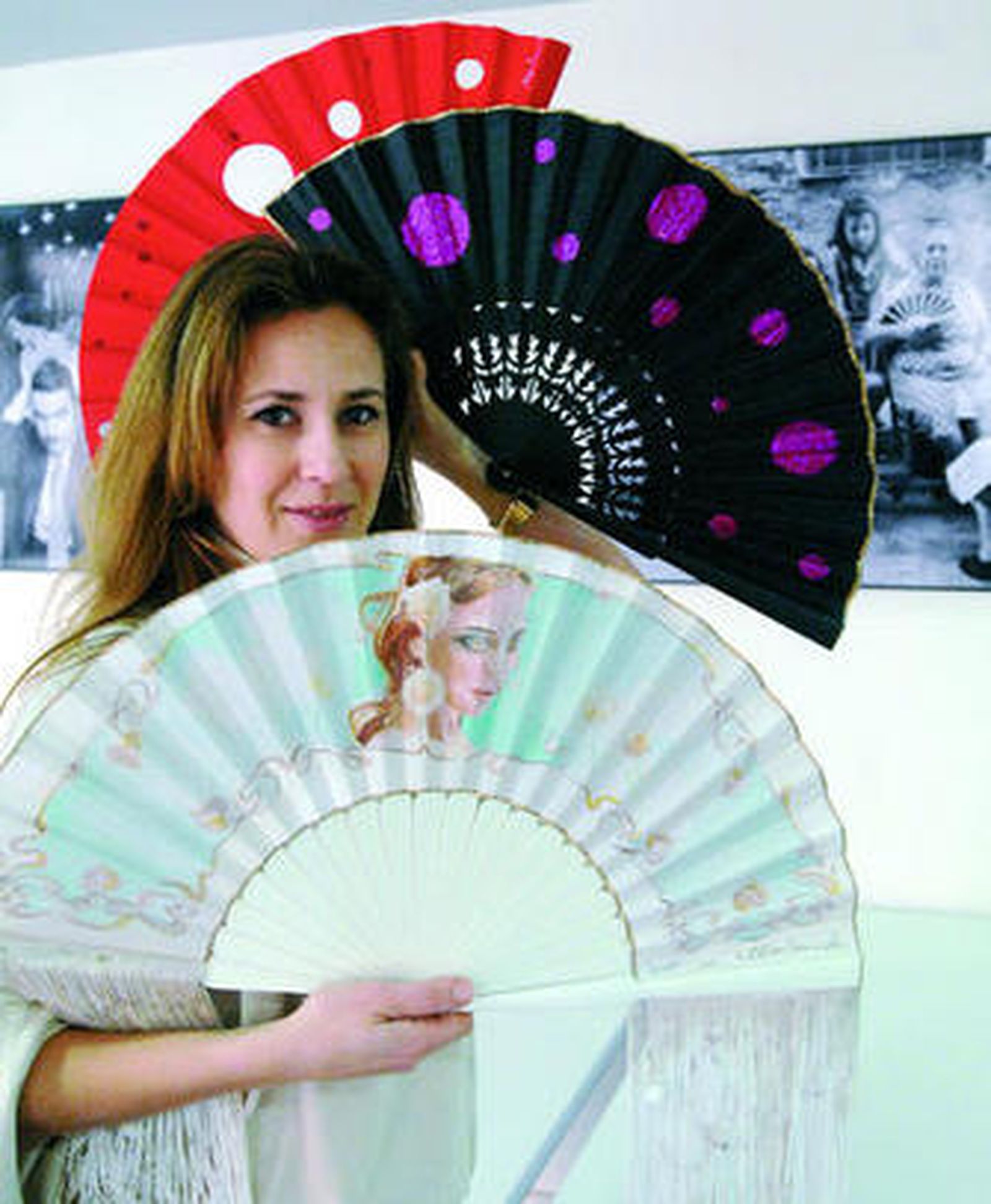 Encarga el abanico liso de Valencia y luego recorta, transforma, aplica flecos, lentejuelas y desarma, monta y tiñe la madera.