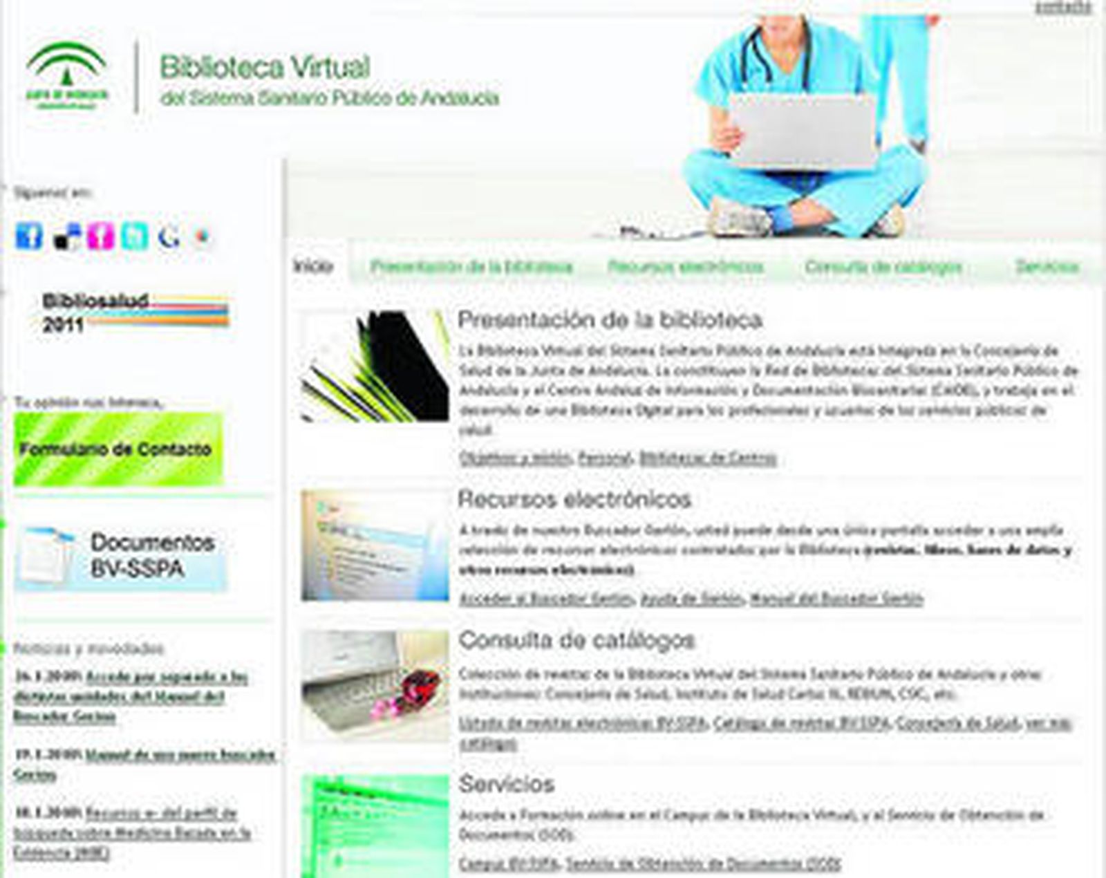 ¿Imaginan tener a su disposición toda la sabiduría que encierran las bibliotecas de 40 centros sanitarios? Pues deje de soñar, ese anhelo es ya una realidad. La Biblioteca Virtual del Sistema Sanitario Público Andaluz (BV-SSPA) brinda a los profesionales de la salud la oportunidad de acceder a casi 2.500 de las más prestigiosas revistas internacionales, miles de artículos, estudios y opiniones y consejos de los expertos más relevantes de cada especialidad desde cualquier terminal conectada a internet. Pero hay una novedad más, el público general también podrá consultar dichos documentos a golpe de clic.