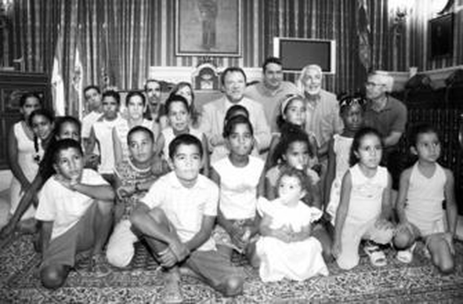 El calor que hace fuera del Ayuntamiento no se parece al que soportan estos chicos todos los días en el desierto del Sahara. Los casi 40 niños, acompañados por sus padres de acogida, pudieron contemplar ayer el patrimonio artístico del Consistorio y, tras la visita, fueron saludados tanto por el alcalde, Alfredo Sánchez Monteseirín, como por la delegada de Bienestar Social, Ana Gómez. El alcalde puso de manifiesto "el compromiso que desde hace mucho años tiene el Ayuntamiento con el pueblo saharaui".