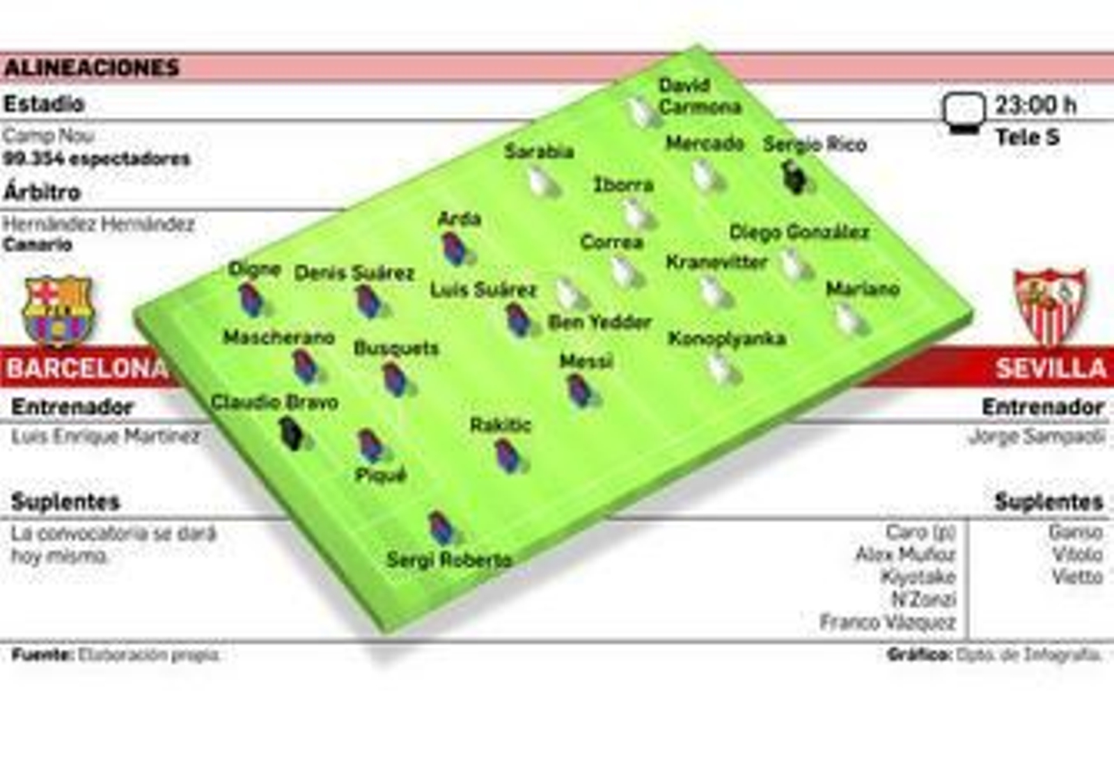 Afrontar a Messi, Luis Suárez, Arda Turan, Denis Suárez o Rakitic en esa vasta pradera que es el Camp Nou era ya de por sí una empresa de órdago. Hacerlo sin los escudos más baqueteados multiplica la dificultad de conservar la integridad de la portería de Sergio Rico. Y esa premisa, la de mantener el cero en la propia portería, se antoja una premisa fundamental para agarrarse a un hilo de esperanza.