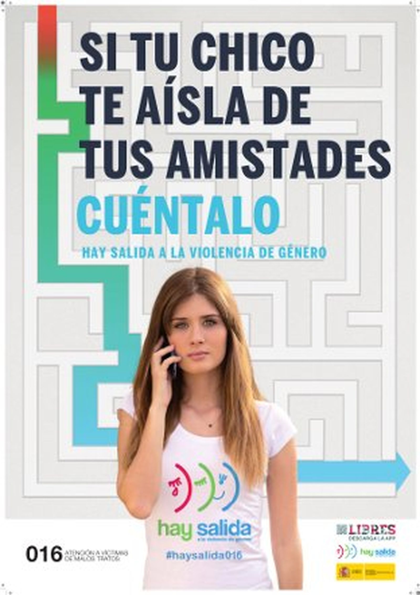 La nueva campaña, que arrancará el miércoles en prensa, radio, televisión, medios digitales y exteriores, estará orientada a los jóvenes desde los 13 años con el eslogan Cuéntalo para que entiendan que "la dominación y el control nada tienen que ver con el amor". "Si tu chico te hace sentir miedo, te controla el móvil, te aisla de tus amistades o te ridiculiza, cuéntalo. Hay salida a la violencia de género", son los cuatro mensajes de los anuncios, que cuentan con un presupuesto de 1,64 millones de euros. El acoso a través de las nuevas tecnologías se ha convertido en una forma cada vez más común de enviar mensajes insultantes y amenazantes como forma de maltrato entre los más jóvenes, según los últimos estudios de la Delegación del Gobierno para la Violencia de Género.