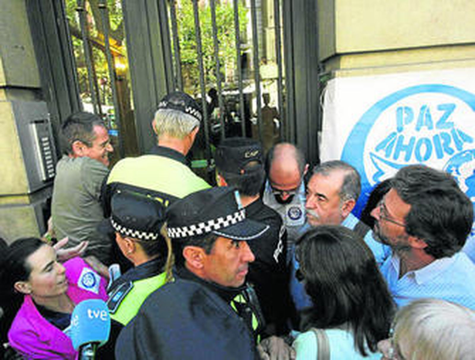 Un juzgado de Madrid ejecutó ayer el desahucio de la sede de la ONG Paz Ahora, situada en la calle Princesa de Madrid, por el impago del alquiler durante diez meses, a pesar de las protestas de media docena de miembros del 15-M, que intentaron impedir la entrada de la comisión judicial. El presidente de la ONG, dedicada a proyectos de ayuda al pueblo palestino, Julio Rodríguez Bueno, permaneció dentro de la sede mientras un cerrajero cambiaba la cerradura y la comisión ordenaba a una empresa de mudanzas que vaciara el inmueble bajo la vigilancia agentes de la Policía Municipal.