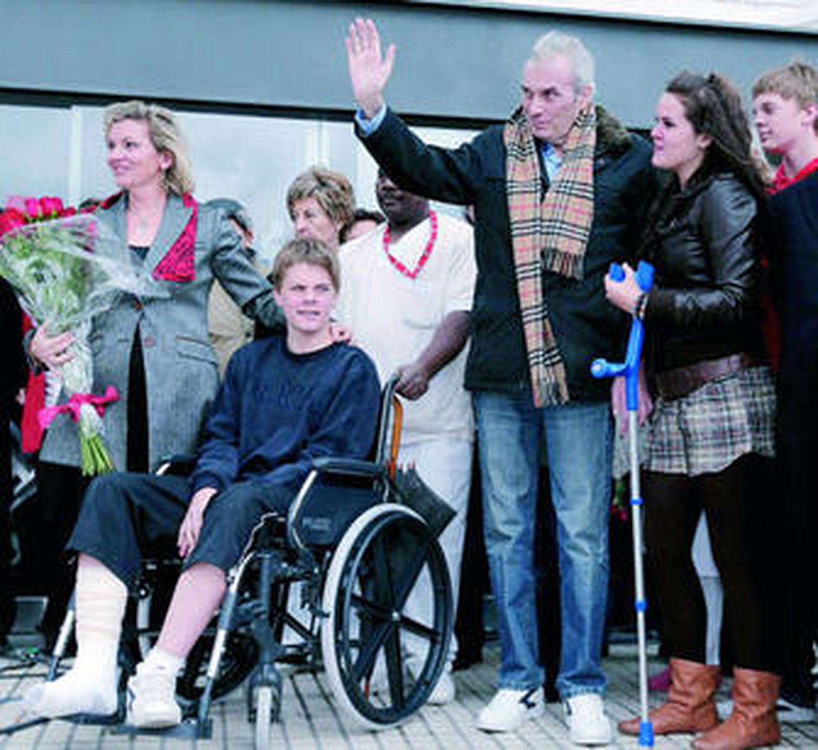 Pasadas las 12:30, Neira, que ayer cumplía 56 años, en silla de ruedas y flanqueado por su mujer, sus hijos y el alcalde de Majadahonda, Narciso de Foxá, apareció demacrado pero sonriente en el vestíbulo del hospital Puerta de Hierro, donde le esperaban amigos, curiosos, pacientes y cientos de medios de comunicación a los que atendió sin perder la paciencia.